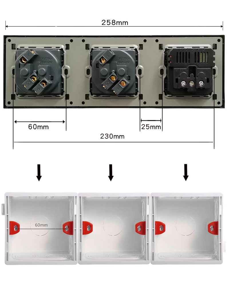 Дисплей сзади, подходит для нижней коробки, пожалуйста, обратите внимание! Установочная коробка не входит в комплект