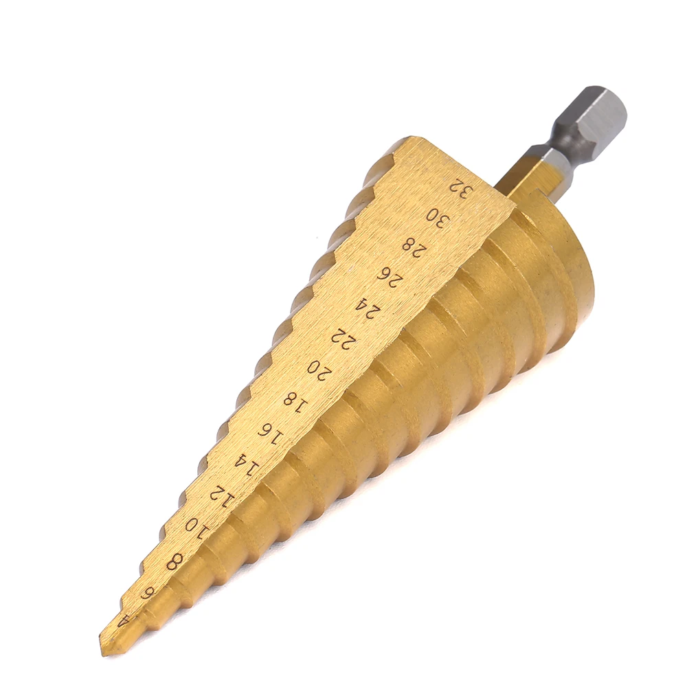 Ступенчатое сверло из быстрорежущей стали с титановым покрытием, вы...