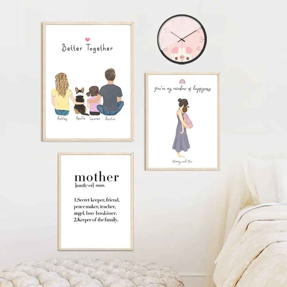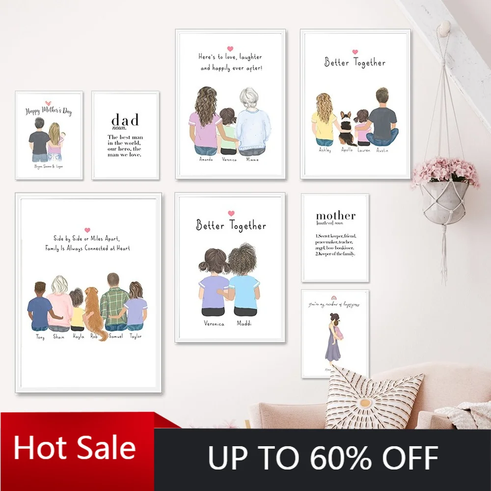Самоклеящаяся картина, настенная наклейка, Enfold, семья, Папа, мама, ребенок, сестра, домашнее животное, любовь, скандинавские плакаты, картины, украшение детской комнаты icon star icon star icon star icon star icon star