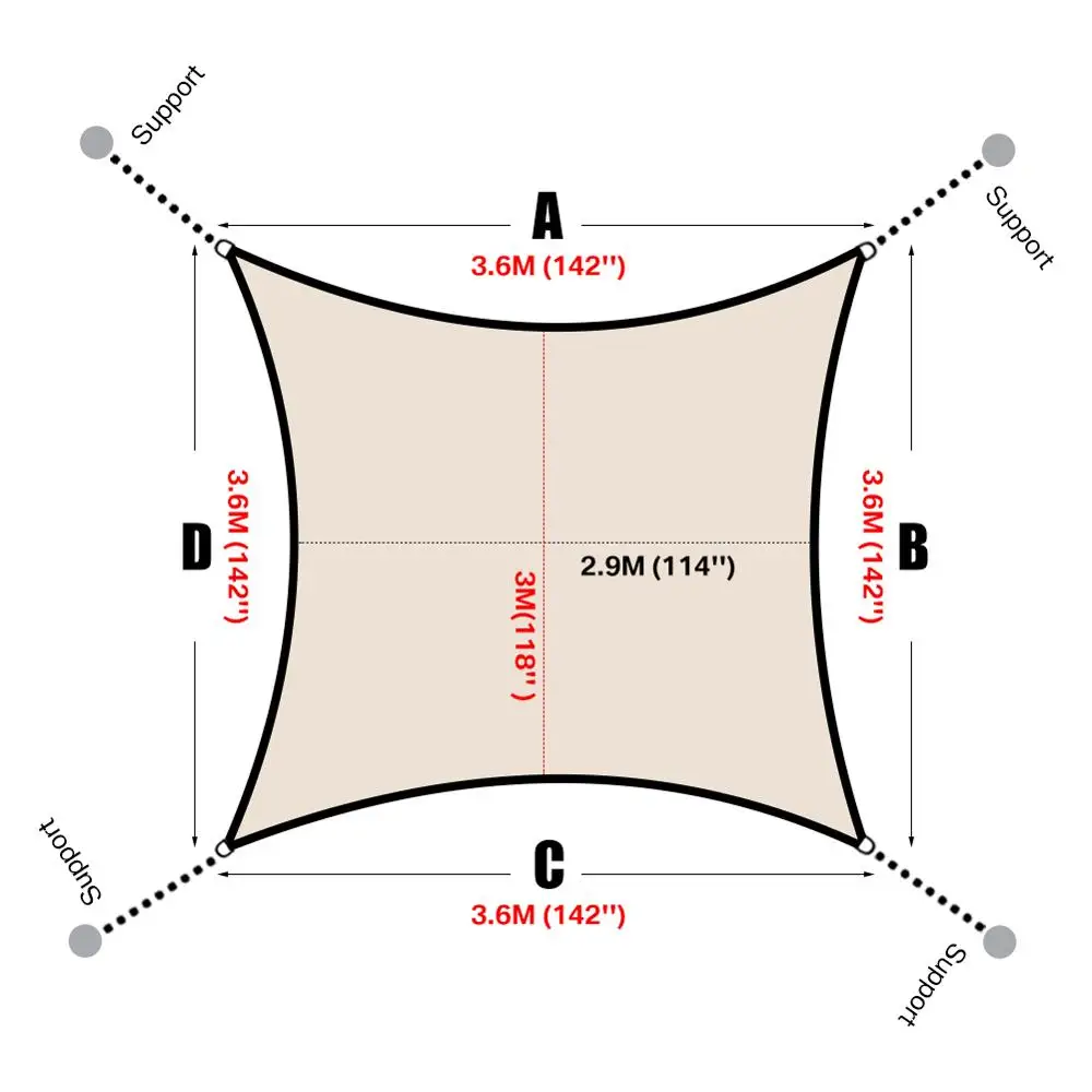 1. Высокое качество Изготовлен из 100% абсолютно нового 280 GSM HDPE (полиэтилен высокой плотности) материала и отвергает переработанные материалы, более здоровый и безопасный. 2. Водонепроницаемый Изготовлен из высококачественного полиэфирного материала, более здоровый и безопасный. Он устойчив к выцветанию, водонепроницаемый и не содержит плесени, плесени и пятен, включая три накладки для глаз. 3. D-образных уплотнительных кольца D-кольца из нержавеющей стали, основные части теневого паруса, долговечны, что может служить вашему теневому парусу в течение длительного срока службы. Бесплатная подача 4 * 1800D ветровых канатов (200 см для каждого), прочная обработка шитья с каждой стороны, кольцо из нержавеющей стали D на каждом краю, высокая прочность установки.