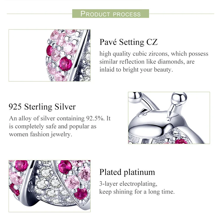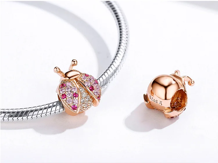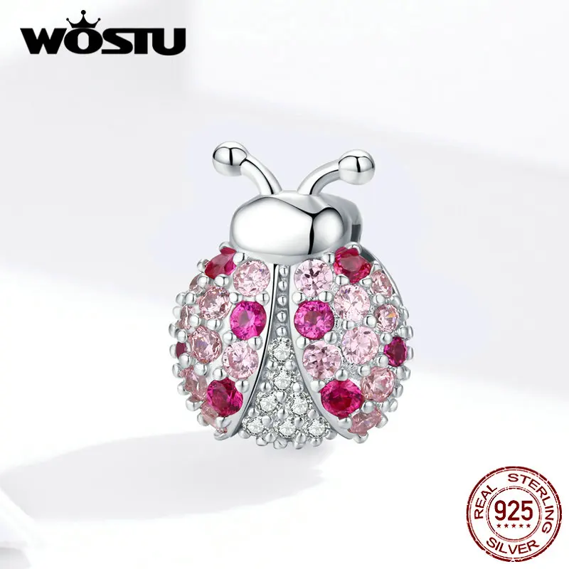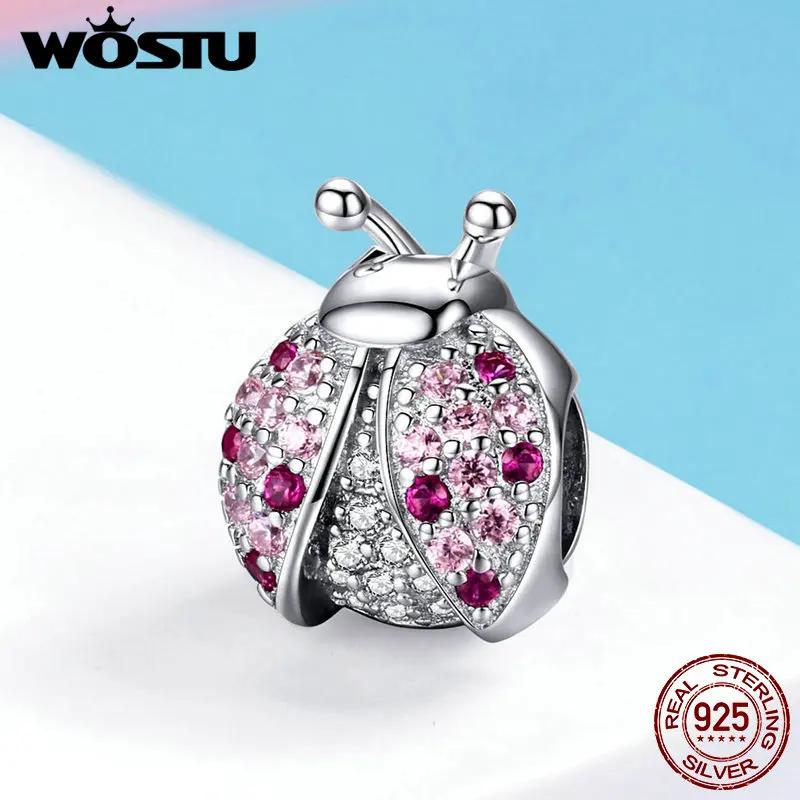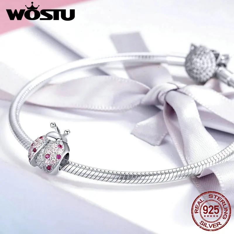 WOSTU серебро 925 кулон насекомых серии божья коровка Шарм Циркон 925 стерлингового серебра бисера, подходят к оригинальному браслету, ювелирные изделия для женщин