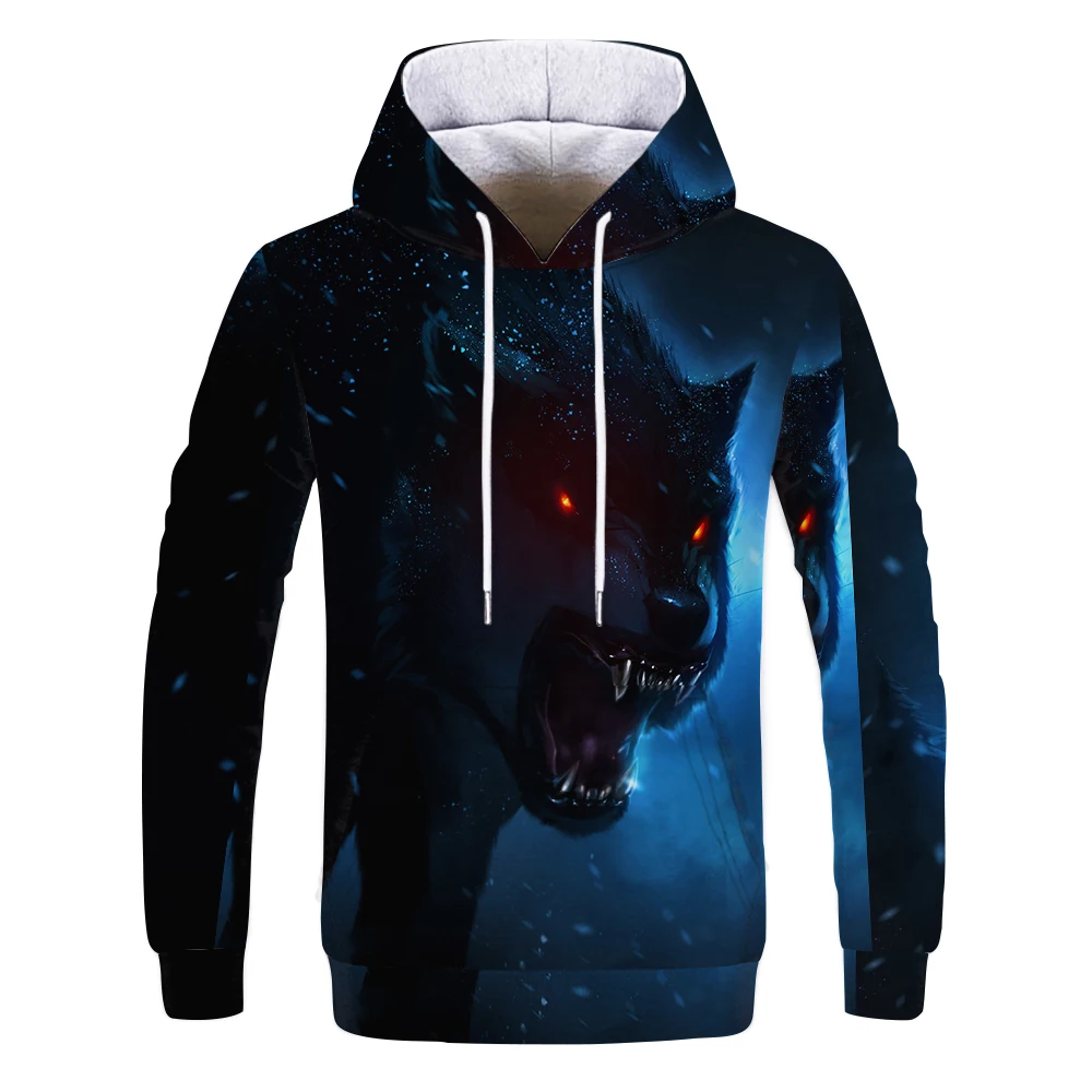 Популярная стильная одежда с объемным принтом волка, модная мужская 3D Толстовка, свободная теплая хлопковая толстовка, Мужская футболка оверсайз