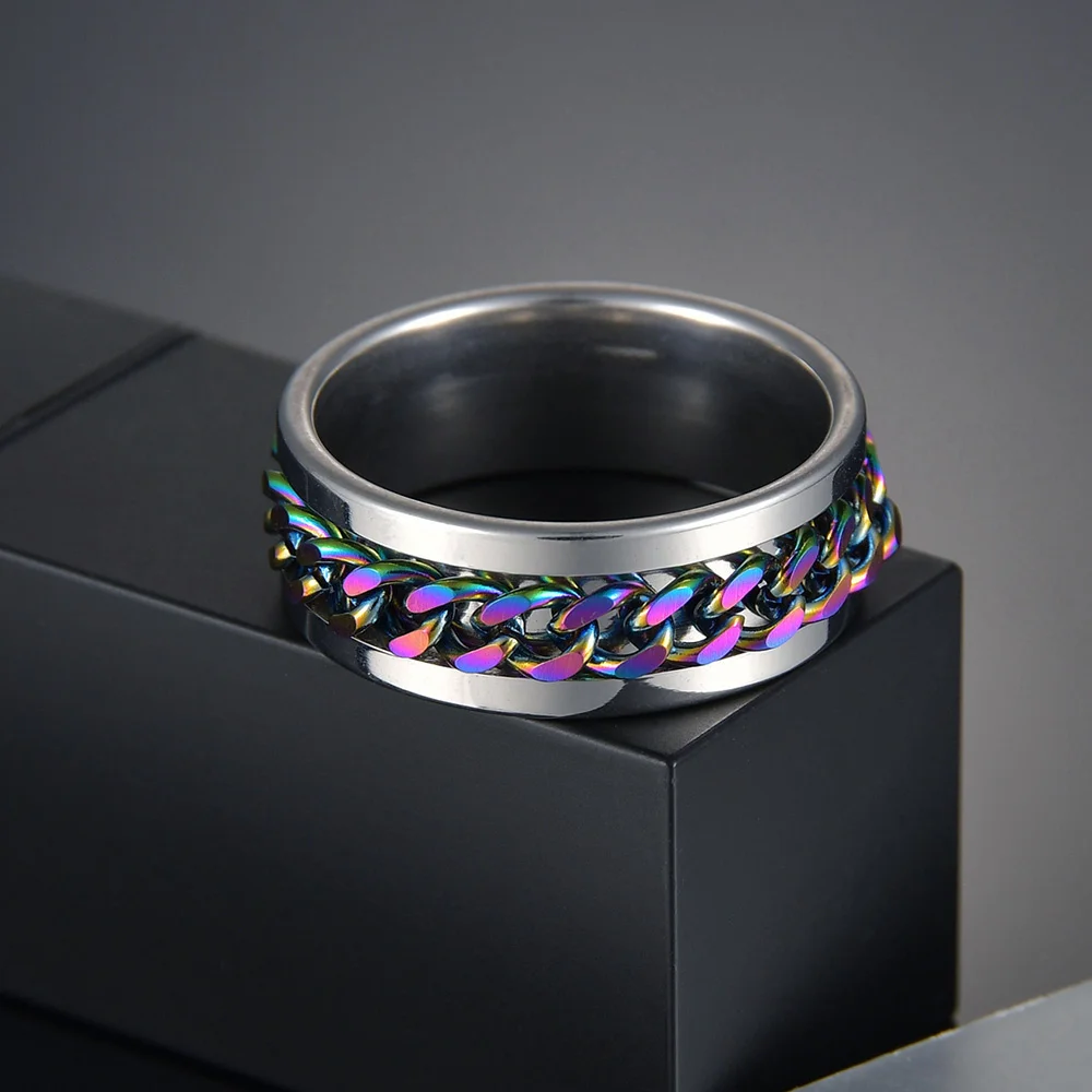 Название:8 мм Панк титановая сталь римская цифра крученая цепь кольца для мужчин полированный черный Супермен рок байкерское кольцо свадебное масонское кольцо