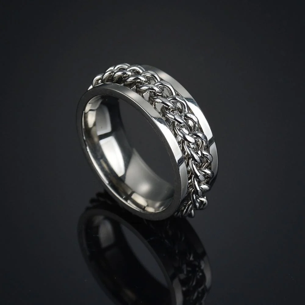 8 мм в стиле панк из титановой стали с римскими цифрами витая Цепочка кольца для мужчин полированной Black Rock Байкер Свадебные масонское кольцо, ювелирное изделие, подарок