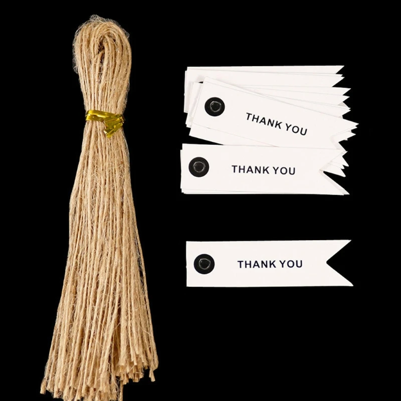 50 шт. бумажных подарочных пакетов, бирки с веревкой, спасибо, ручн...