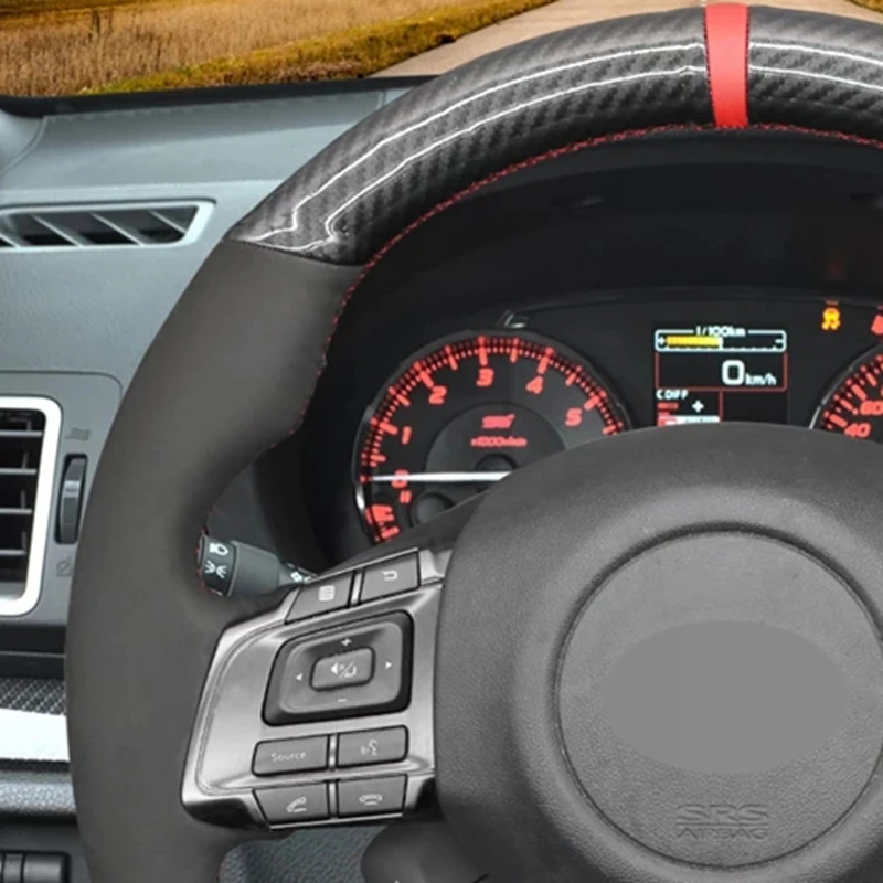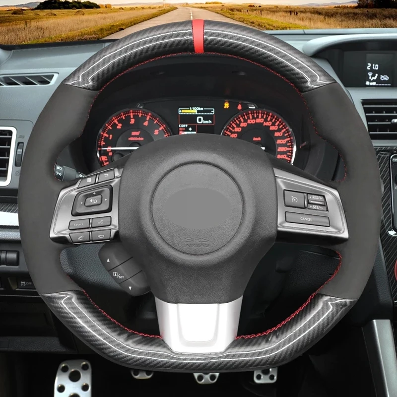 Нескользящего черного графита волокна Черная замша DIY чехол рулевого колеса автомобиля для Субару WRX (STI) Levorg 2015 2016 2017 2018 2019 2020 2021