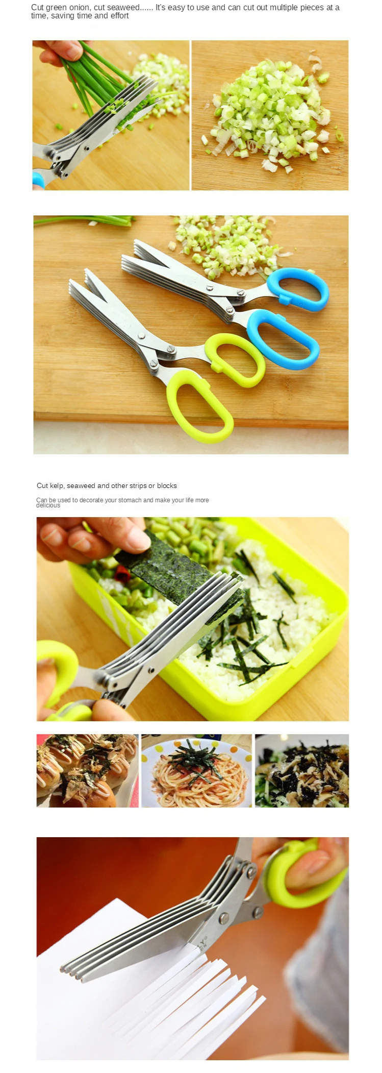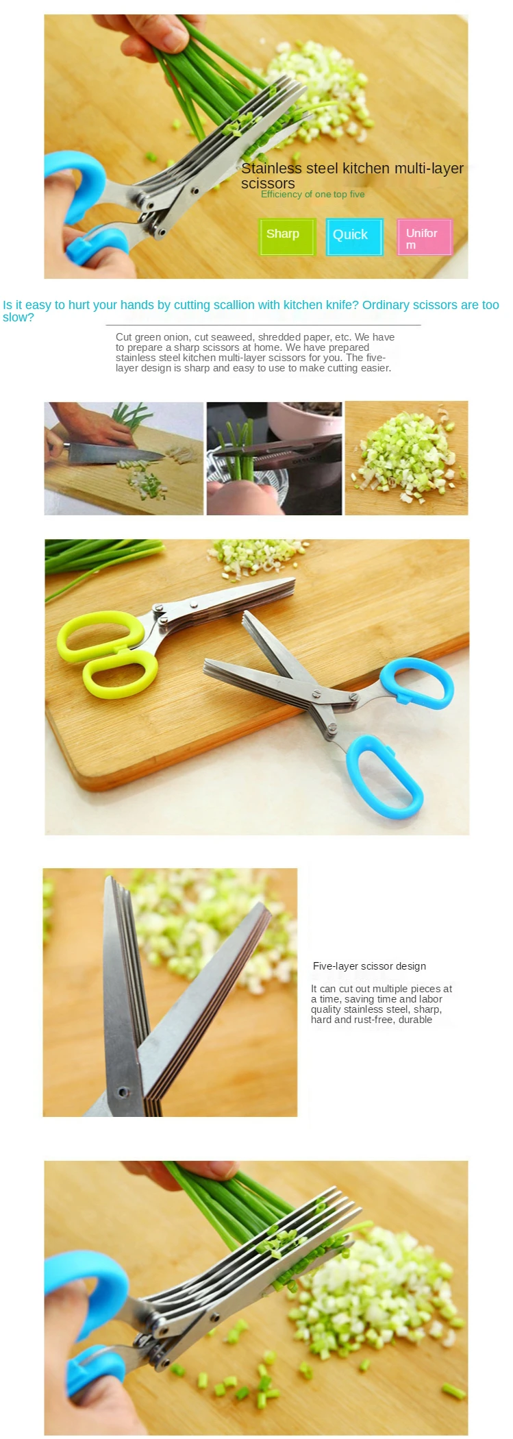Многослойные кухонные ножницы, многофункциональный нож из нержавеющей стали для резки трав, морских водорослей, лука, специй, инструмент для приготовления пищи