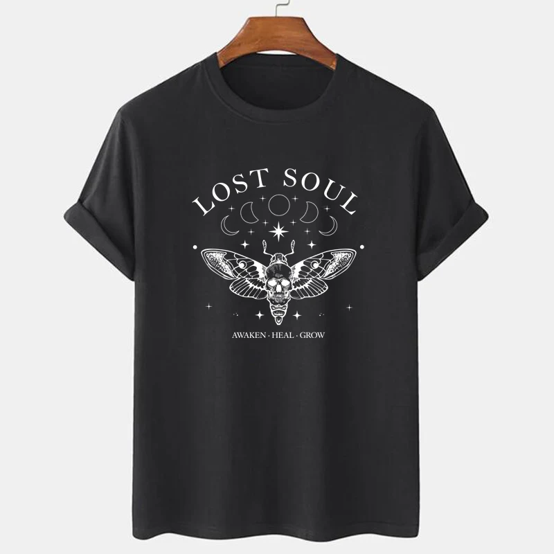 Женская футболка с коротким рукавом, винтажная Готическая футболка с изображением черепа, моли, Луны, фазы, ведьмы