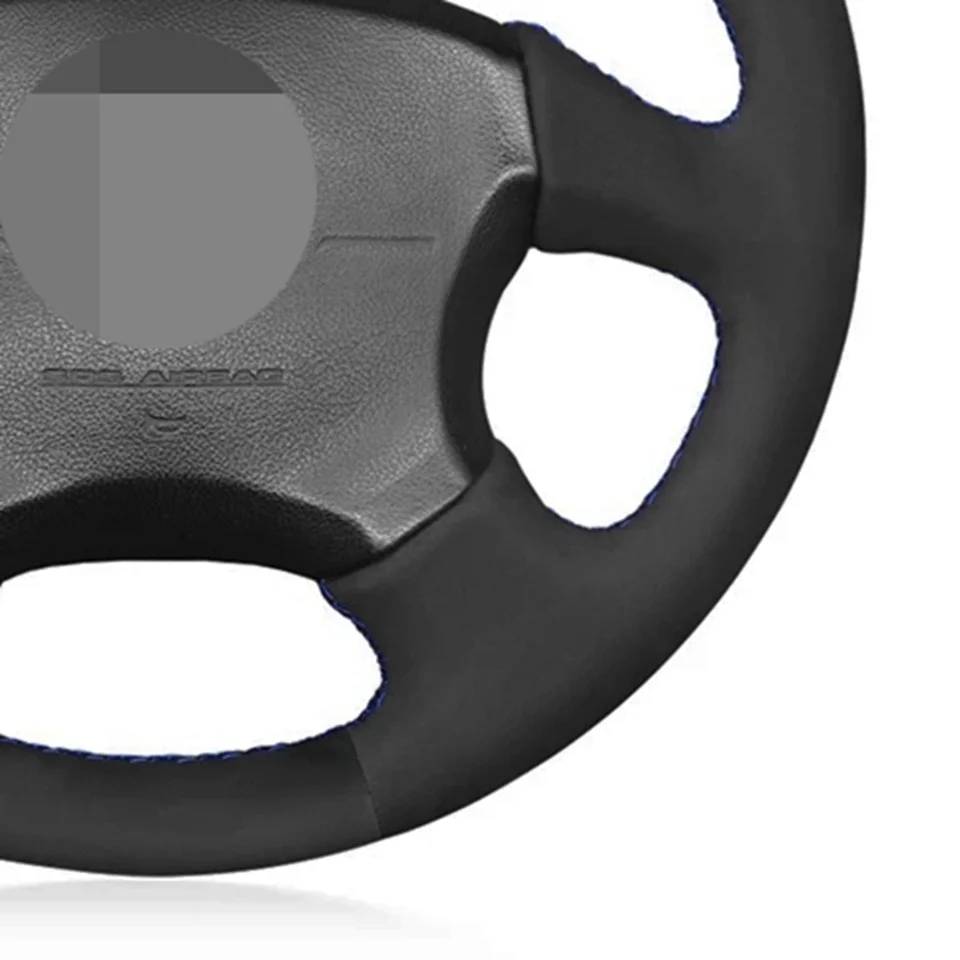 Черная кожаная синяя маркерная чехол рулевого колеса автомобиля для...