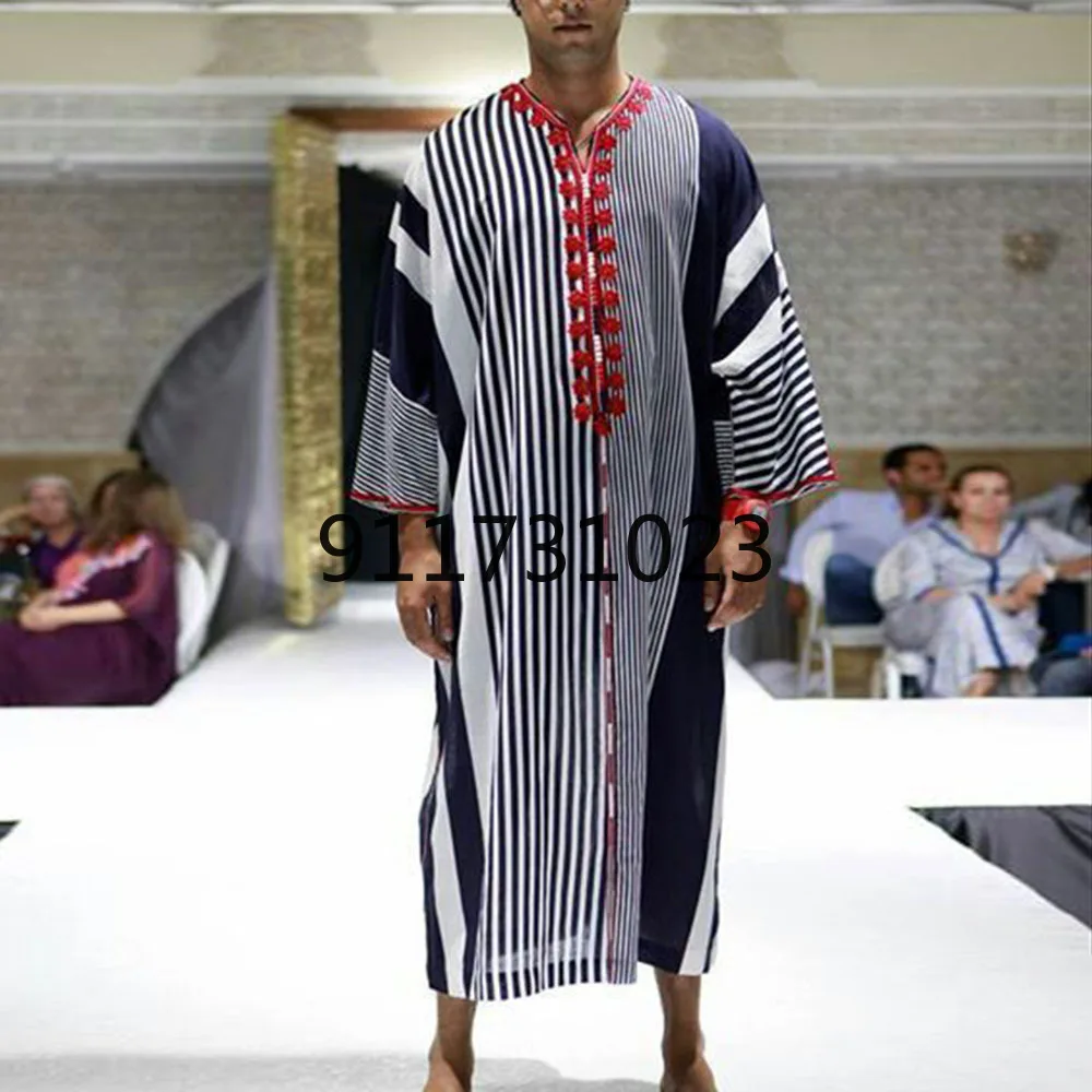 Мужская мусульманская одежда Abaya, черная полосатая одежда с принт...