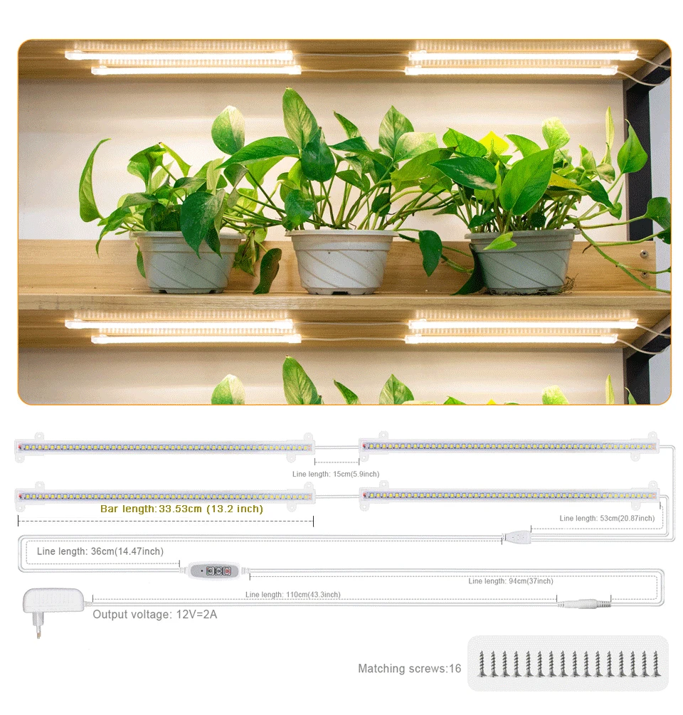 Светильник для выращивания бар поставляется с винтами и приклеивается к задней панели, так что он может быть легко установлен. Шнур питания длиной 94,47 дюйма для легкой установки в офисах, в помещении, на стойках растений, теплицах и так далее.