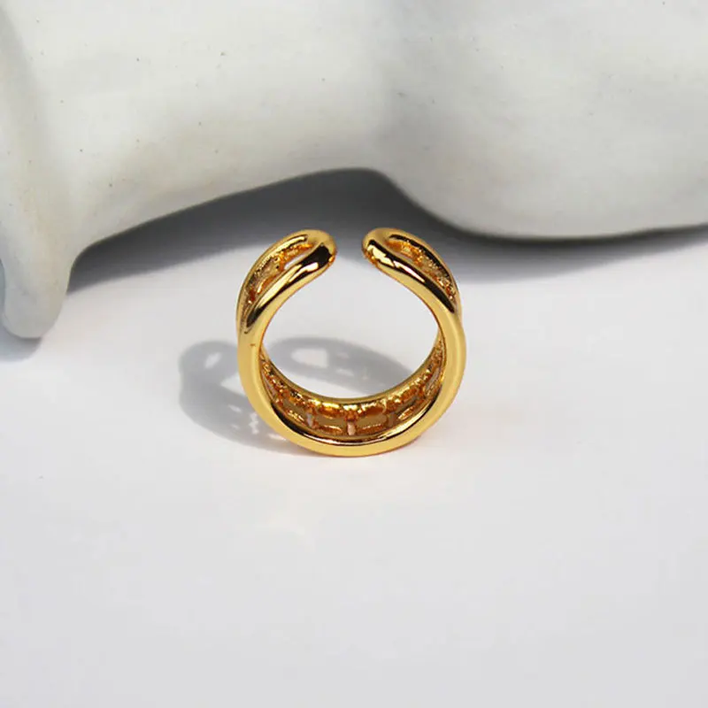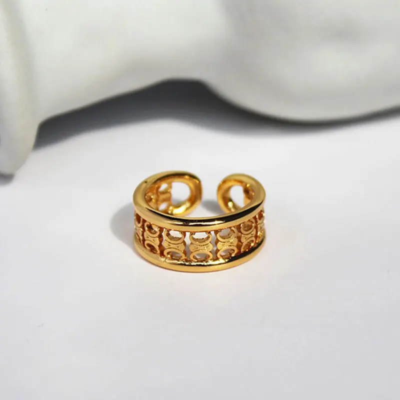 Женское кольцо в китайском стиле VSnow, Винтажное кольцо с отверстиями и резным орнаментом, регулируемое кольцо с металлическим торжественным аркой, ювелирные изделия