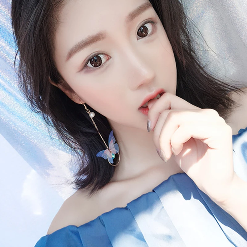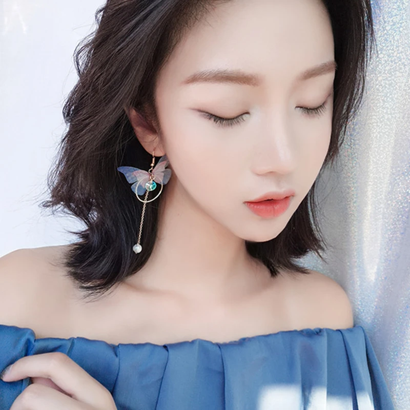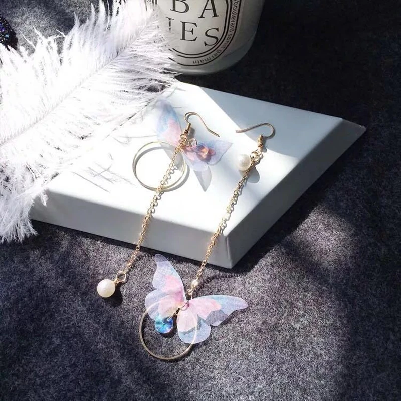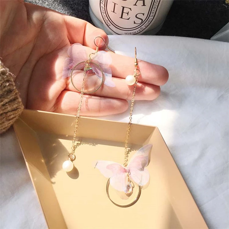 Корейские Симпатичные металлические серьги-кольца с бабочкой бантом жемчугом Асимметричные подвесные висячие серьги для женщин и девушек подростковые тренды 2021 Новое поступление