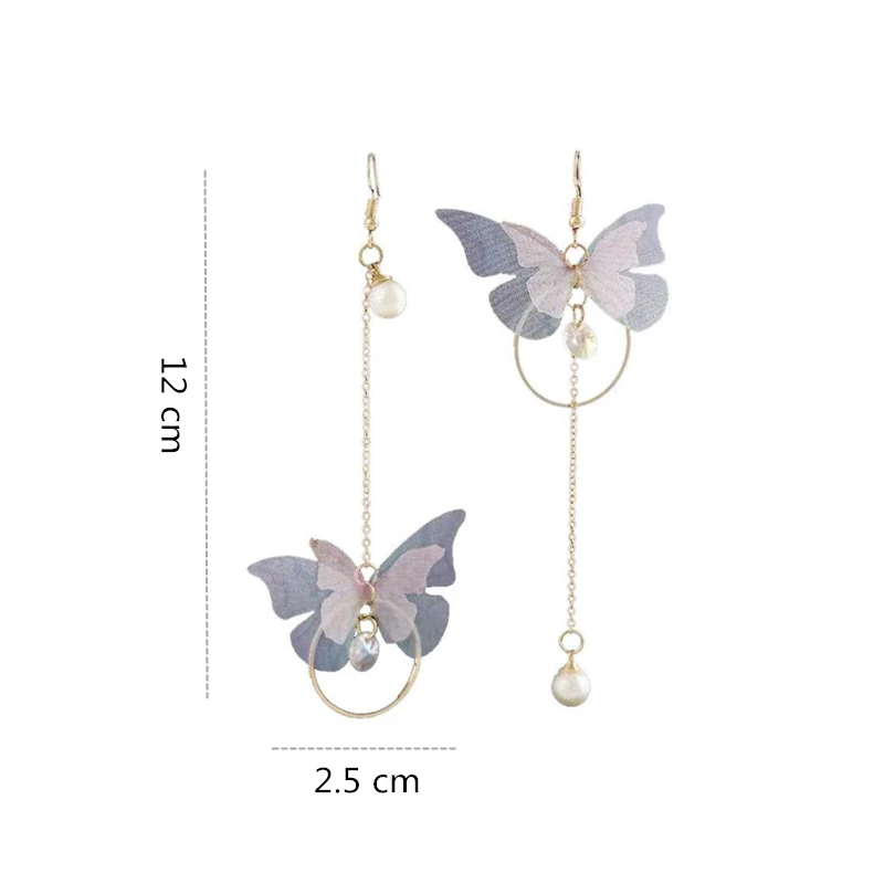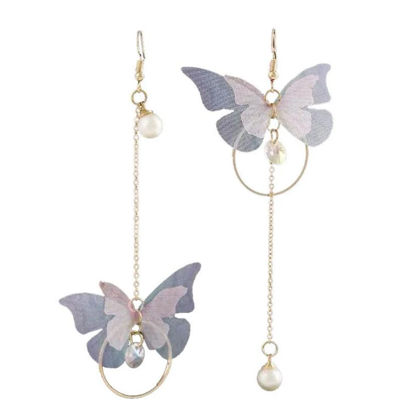 Feature 11Korean Cute Butterfly Bow Pearl Metal Hoop Chain Asymmetrical Earrings