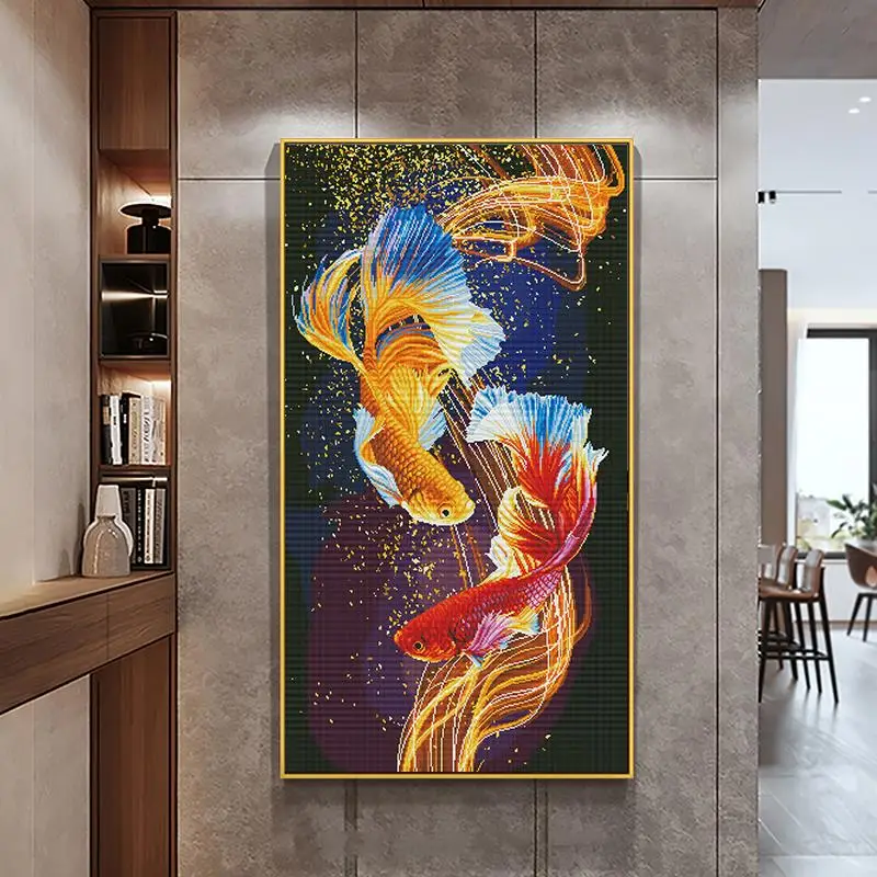 Набор для вышивки крестиком с двумя красивыми рыбками 14CT 11CT, Набор для вышивки животными, рукоделие, украшение для дома, живопись