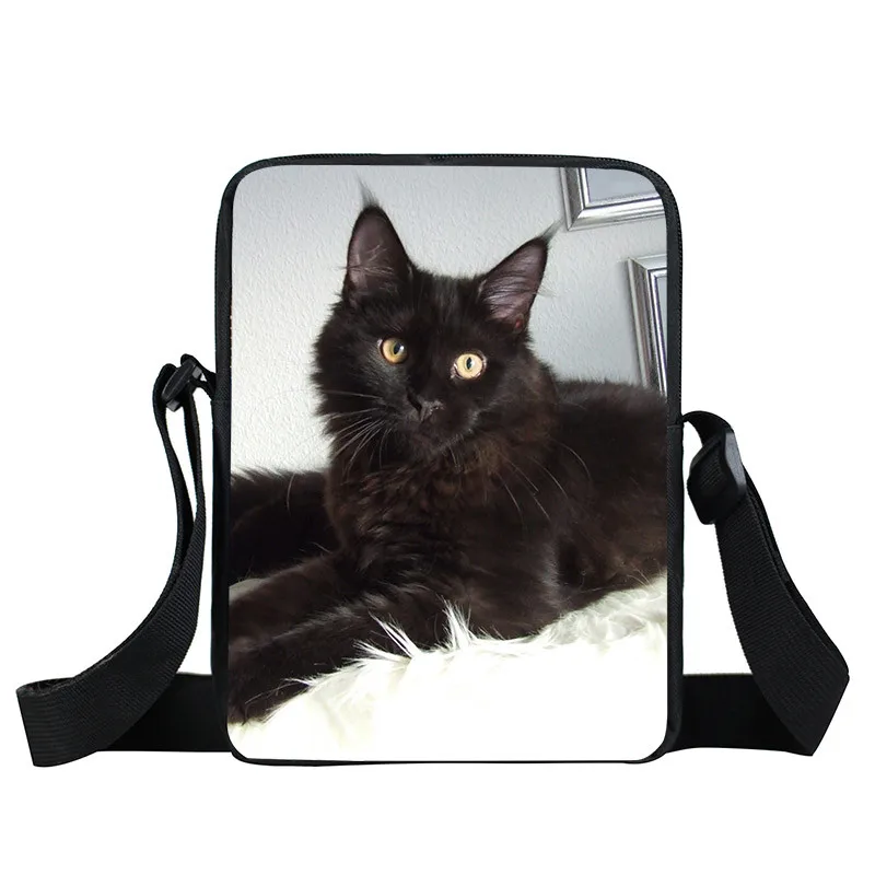 Милая Черная мини-сумка-мессенджер с изображением кошек из мультфильма «Мэн», сумка через плечо с милым котенком, женские сумки через плечо, переносные дорожные сумки, подарок