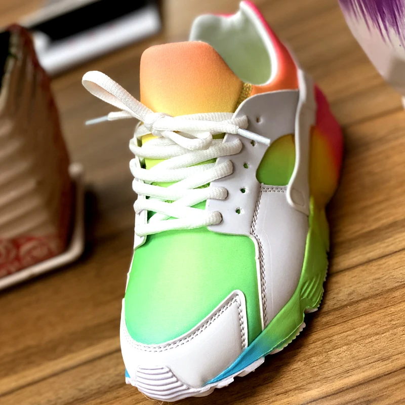 Женские разноцветные сетчатые дышащие Туфли-кроссовки радужной расц...