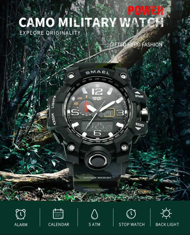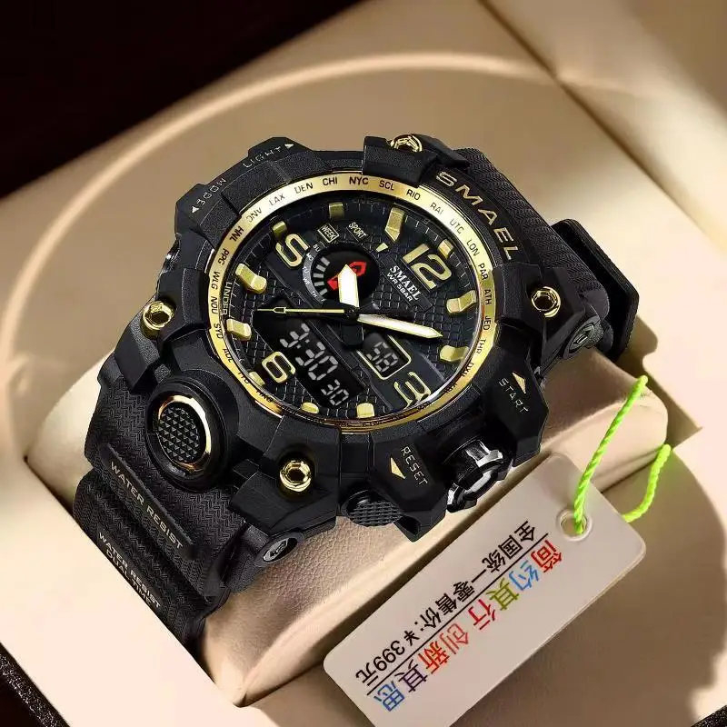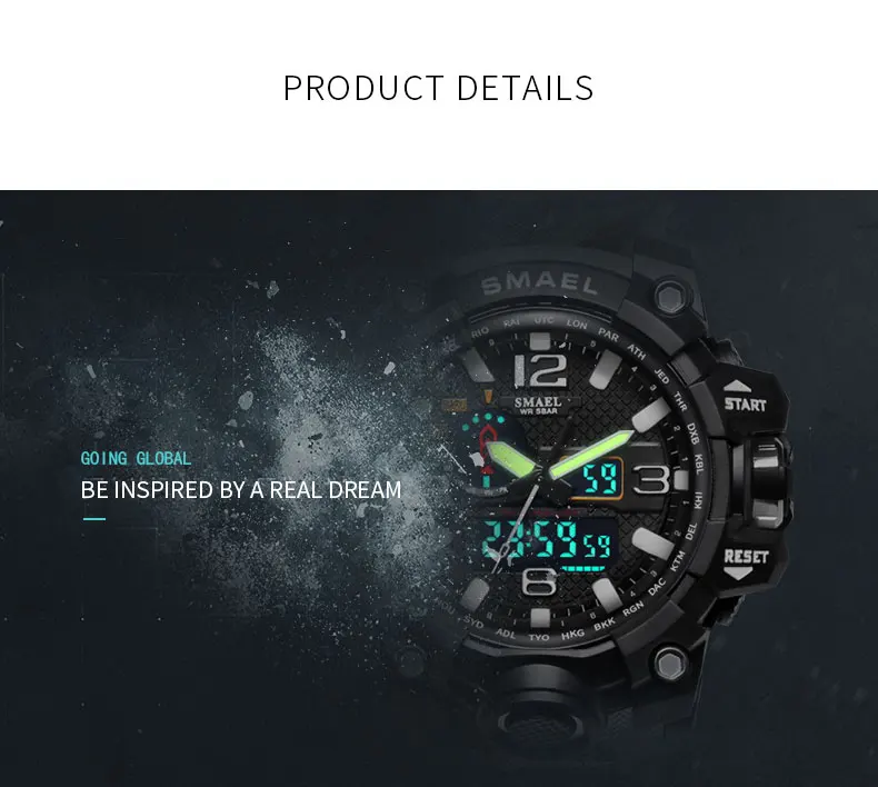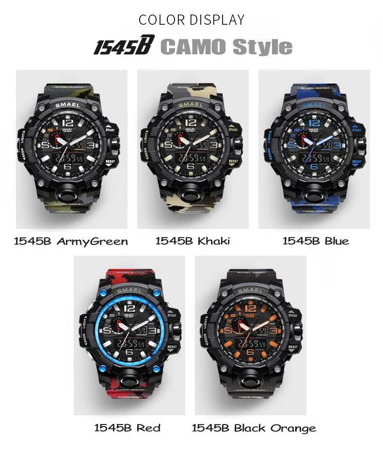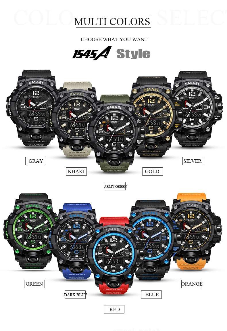 SMAEL Для мужчин спортивные часы Водонепроницаемый светящийся цифровые часы, двойной Дисплей с аналоговым и цифровым дисплеем светодиодный электронный Кварцевые наручные часы