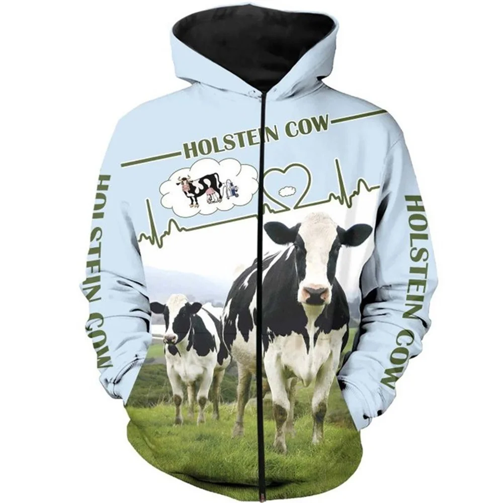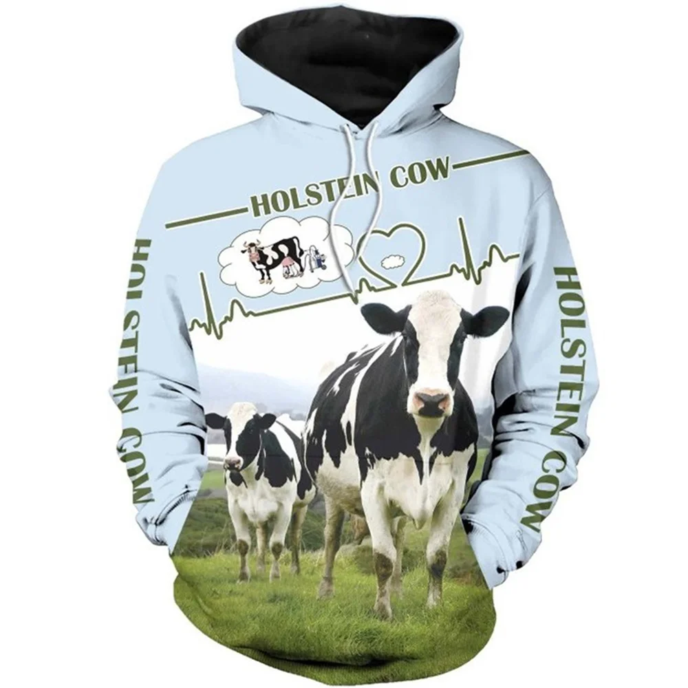Толстовка с капюшоном для мужчин и женщин, модная кофта в стиле Харадзюку С 3D принтом коровы, Holstein, осенняя Толстовка в стиле унисекс, DLL279