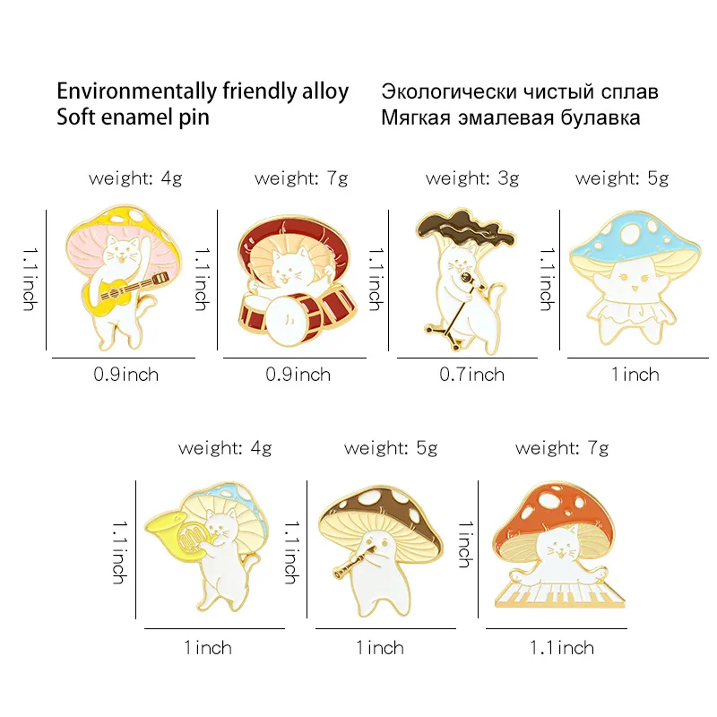 Забавные детские ювелирные изделия, очаровательные эмалированные булавки в форме грибов, под заказ, брошь-барабан для пианино, гитары, саксофона, лацкан, значок, сумка