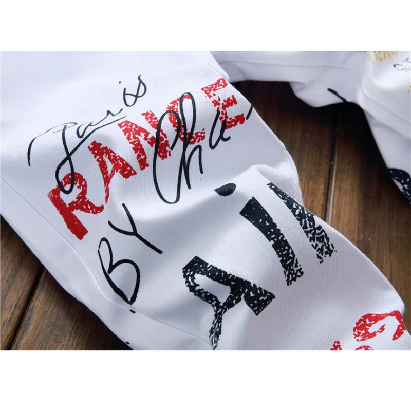 2021 мужские повседневные джинсы-карандаши Печать Slim Fit джинсовы...