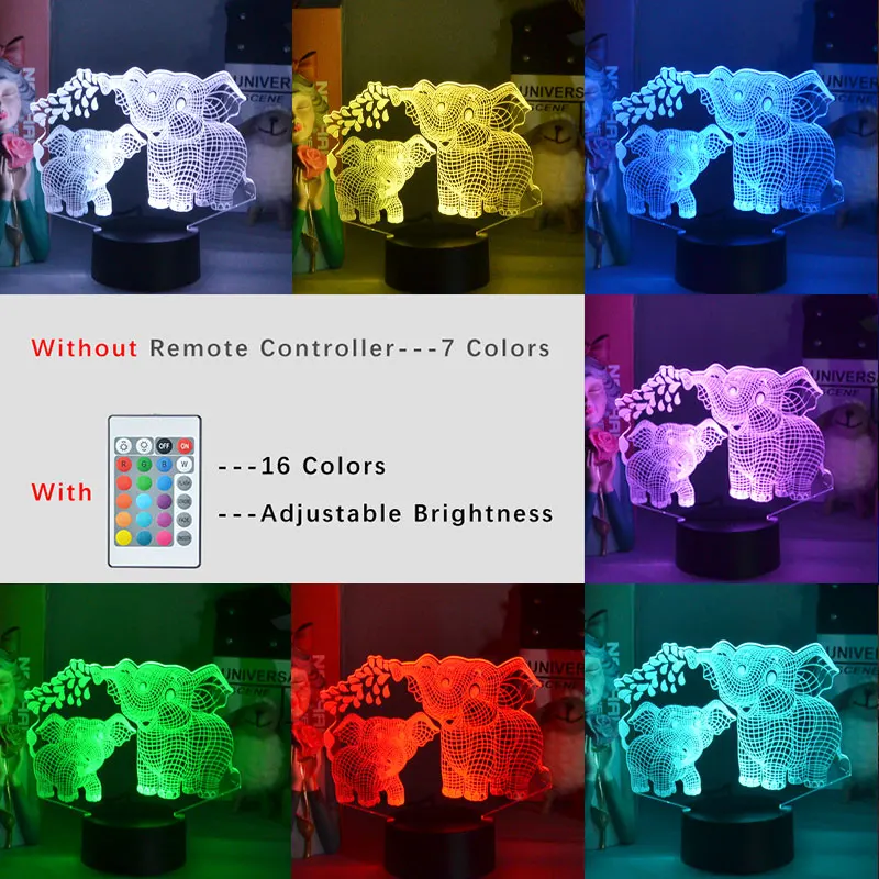 3D Ночник светильник с милым слоном для детской спальни украшения лампы для праздников прикроватная настольная лампа украшение для спальни атмосфера