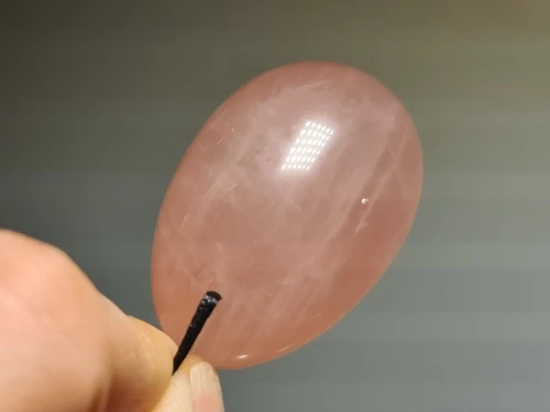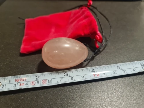 яйцо из розового кварца, размер для начинающих 3*4,5см, гладкое, весом 55гр, верёвочка длиной 20см