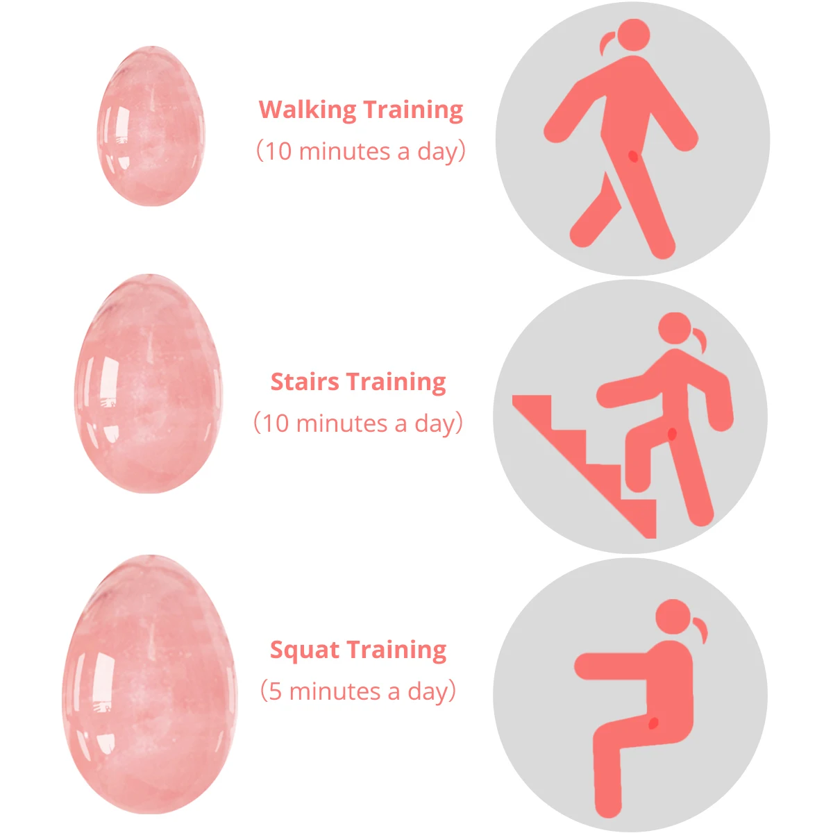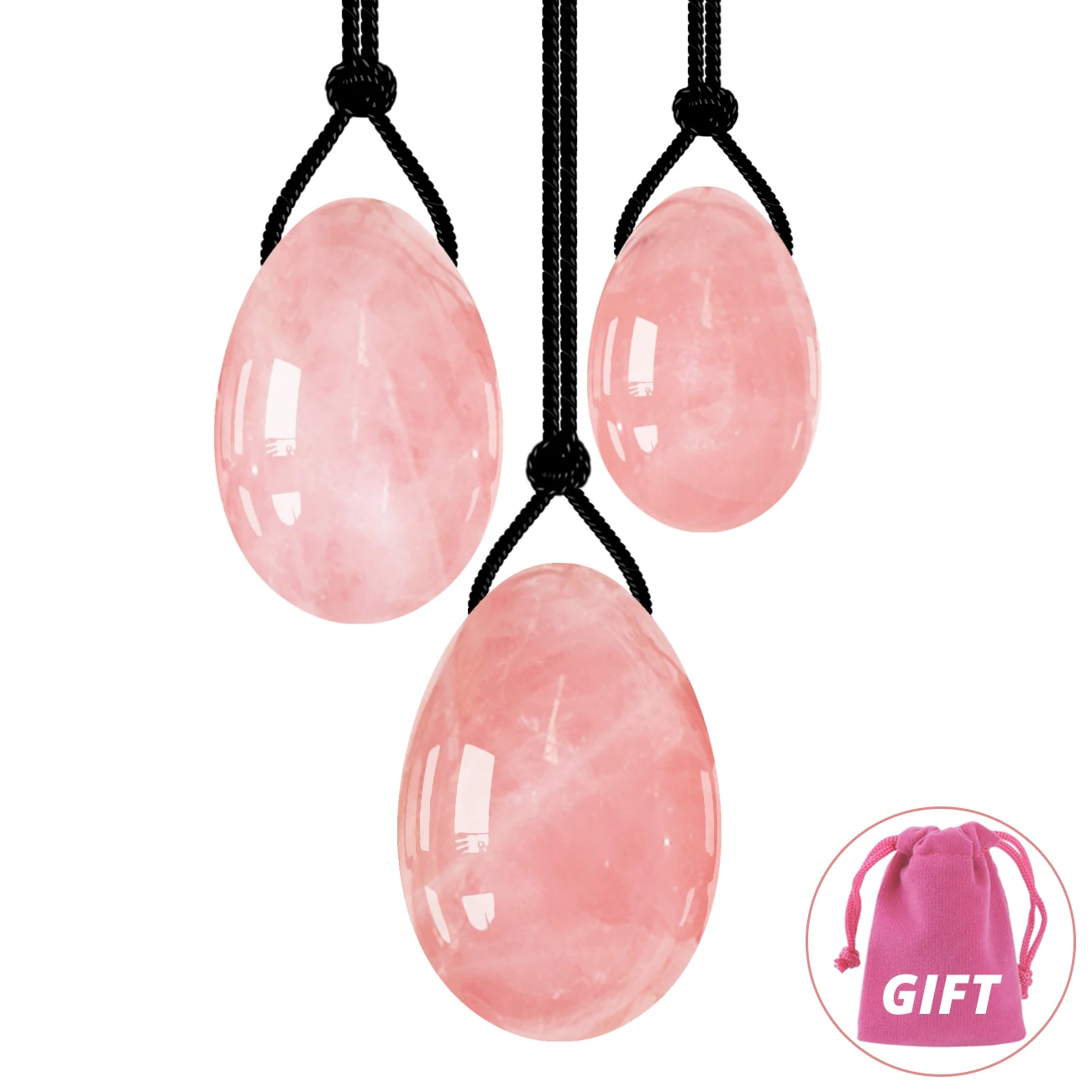 Яйца Yoni из розового кварца для женщин, тренировочный Массажный мяч Кегеля для мышц, 3 размера