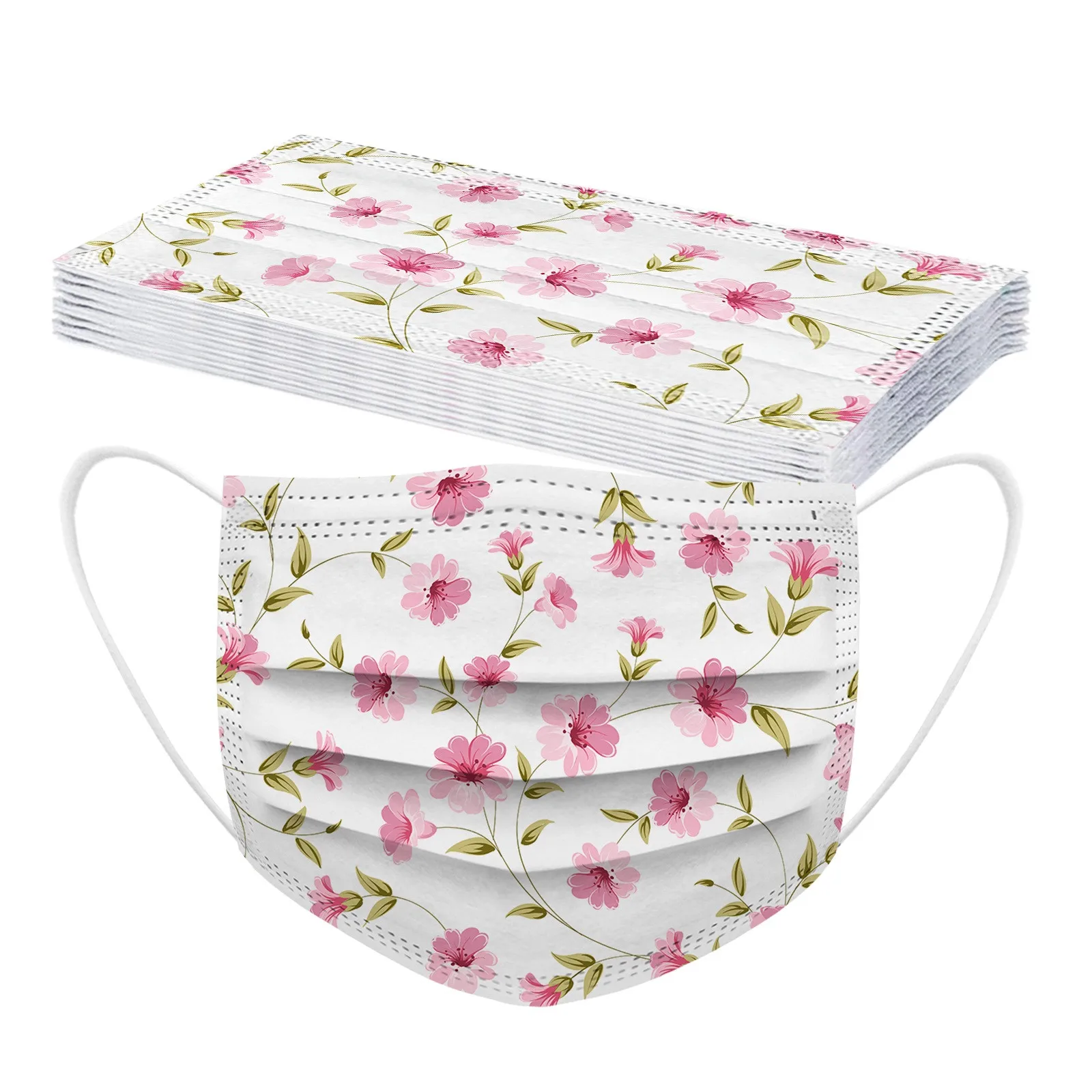 Одноразовые маски для лица взрослых унисекс Цветочный принт 3-Слои маски 10 шт.