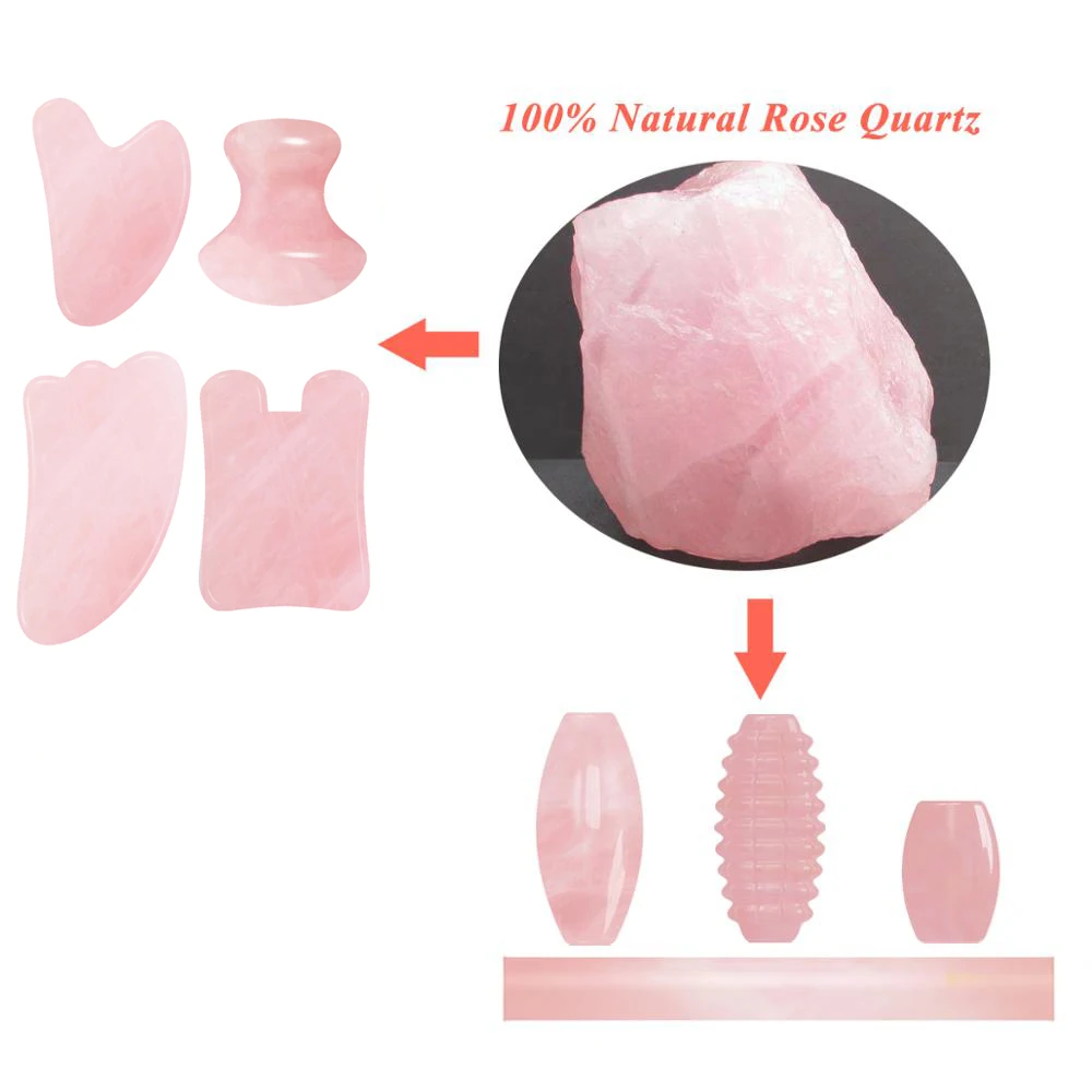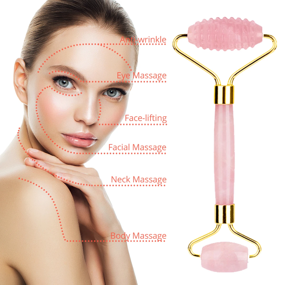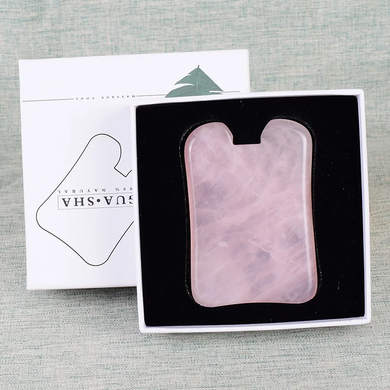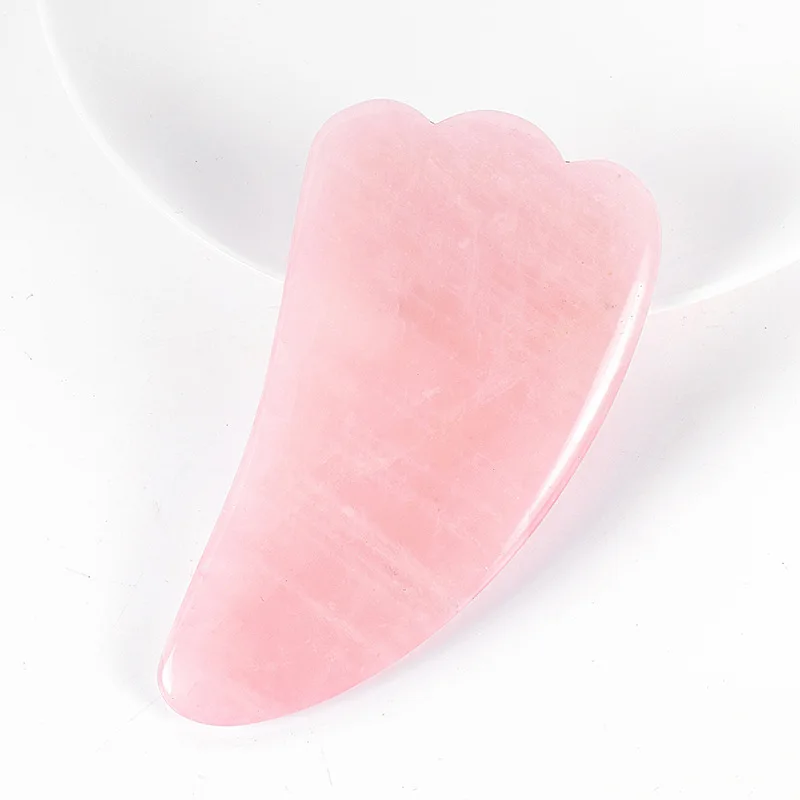 Ролик для массажа гуаши из натурального розового кварца, скребок для массажа лица, настоящий камень, скребок Gua Sha, ролик для лица, инструменты для ухода за кожей