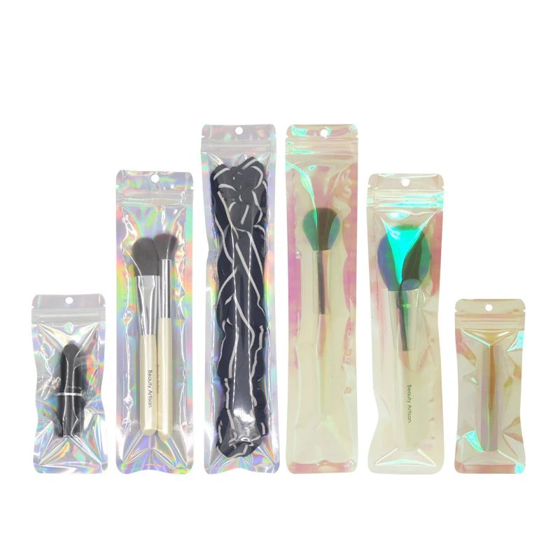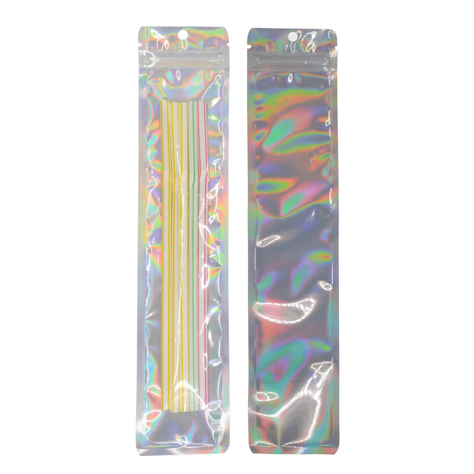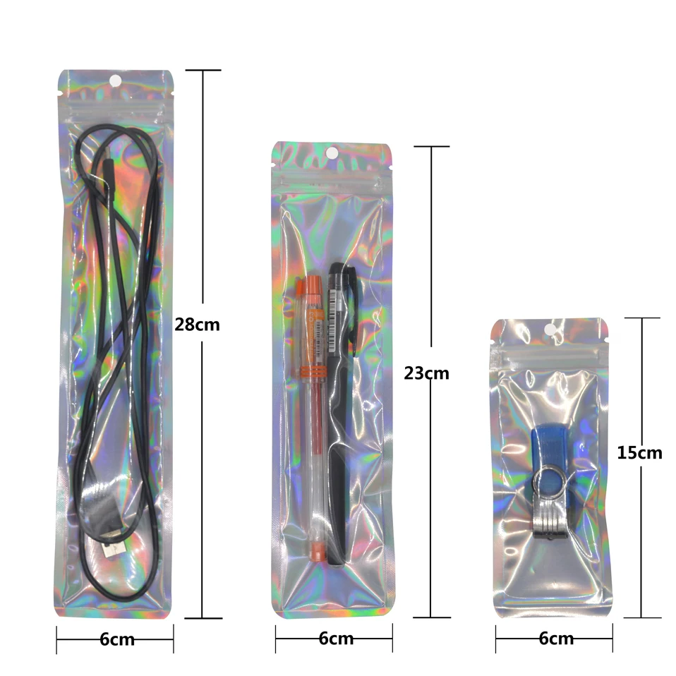 100 шт. односторонняя прозрачная Лазерная алюминиевая фольга, ювелирные изделия, косметика, подарок, пакеты с застежкой-молнией, длинный голографический пакет, упаковка, оптовая продажа