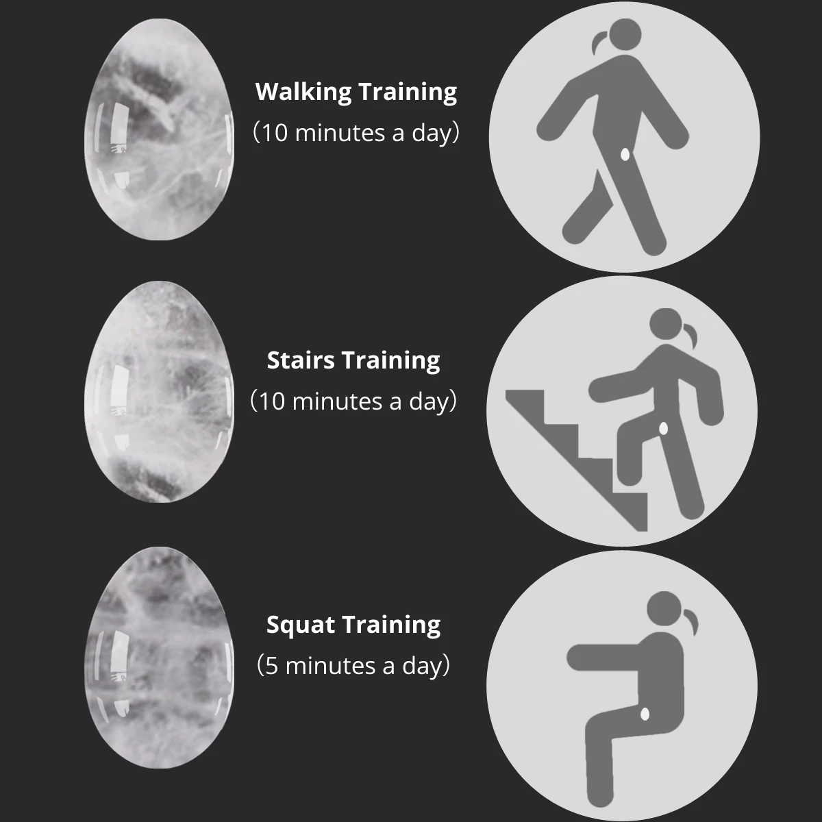 3. Йони яйца для женской тренировки мышц Кегеля, как использовать? Лягте и расслабьтесь, раздвиньте ноги и вставьте больший конец яйца йони, используйте только кончик пальца, чтобы облегчить его. Как только она пройдет отверстие влагалища, стены Йони втянут яйцо. Яйцо Kegel yoni можно использовать во время занятий йогой и медитации, а также во время прогулок, а также повседневных занятий