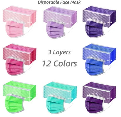 Одноразовая Нетканая 3-слойная маска с фильтром для взрослых, 10-50 шт., фиолетовая, розовая, зеленая маска для лица, дышащая маска для лица для взрослых