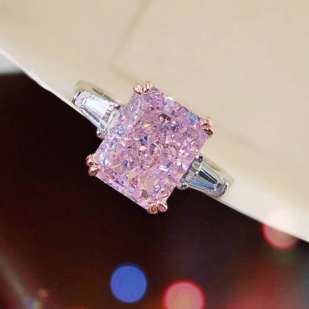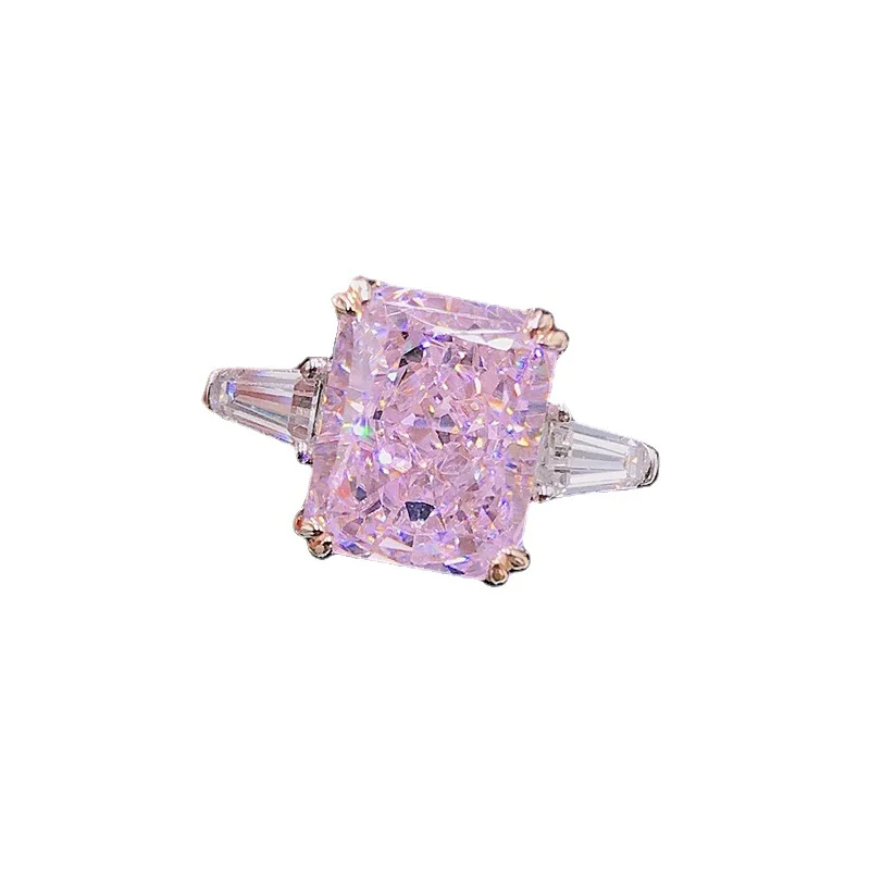 Кольцо женское из серебра 100% пробы с квадратным розовым высокоугл...