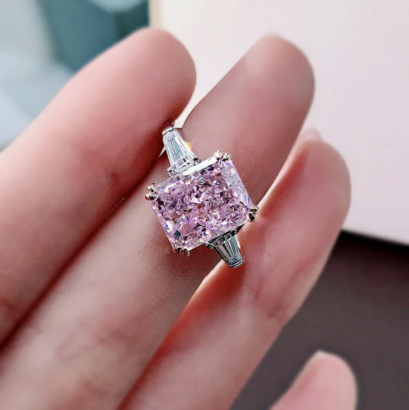 Милые настоящие 925 стерлингового серебра 2 карат розовый создан кольца с муассанитом для Женская сверкающая Свадебная вечеринка свадебные ювелирные украшения