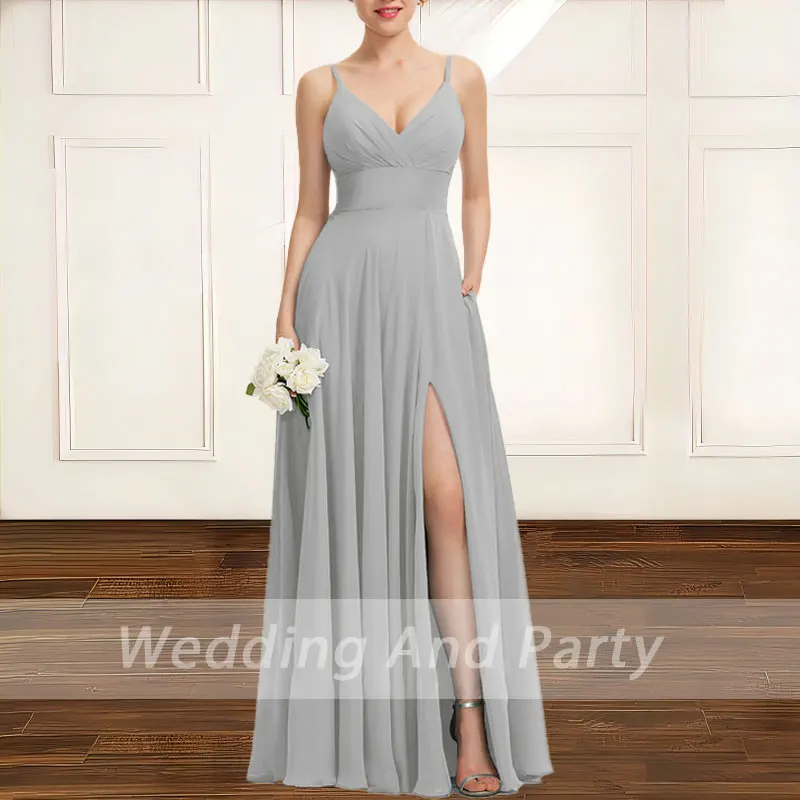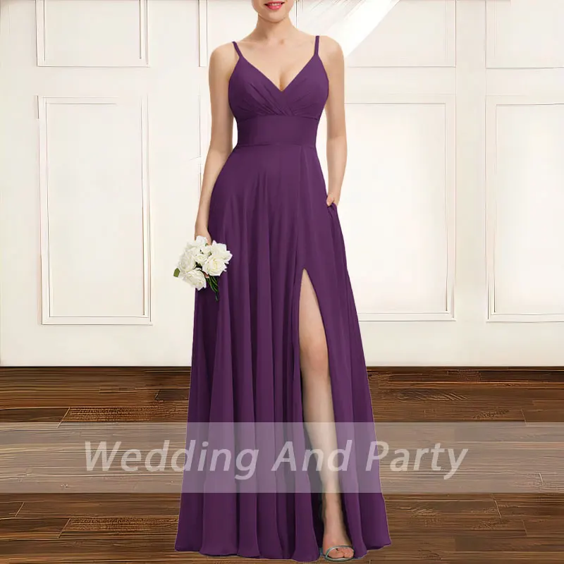 Длинное вечернее платье, шифоновое, с V-образным вырезом, ТРАПЕЦИЕВ...
