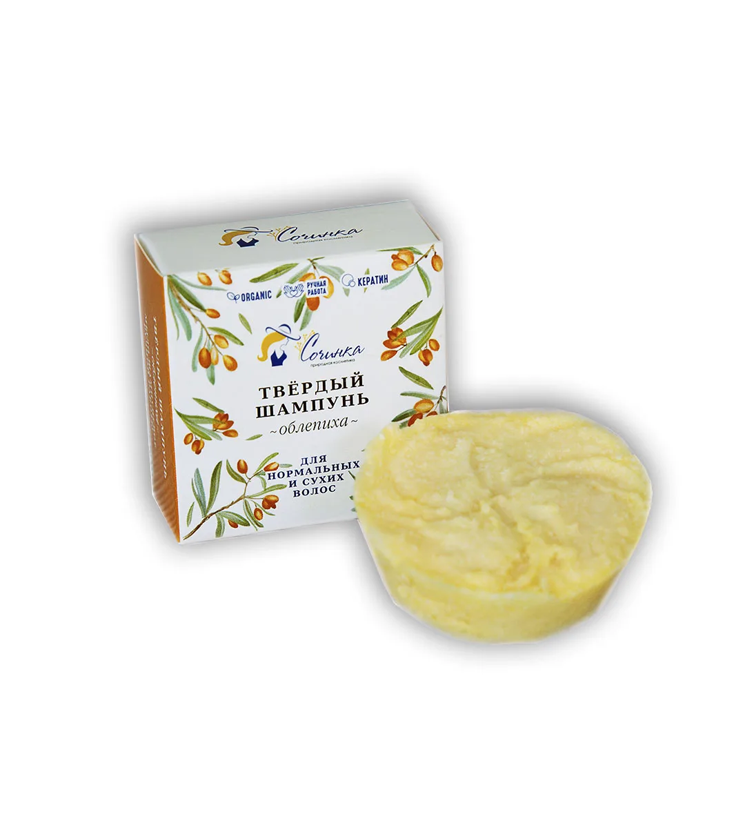 Твердый шампунь Облепиха ручной работы. 50 г. Для сухих волос. Натуральная косметика Сочинка