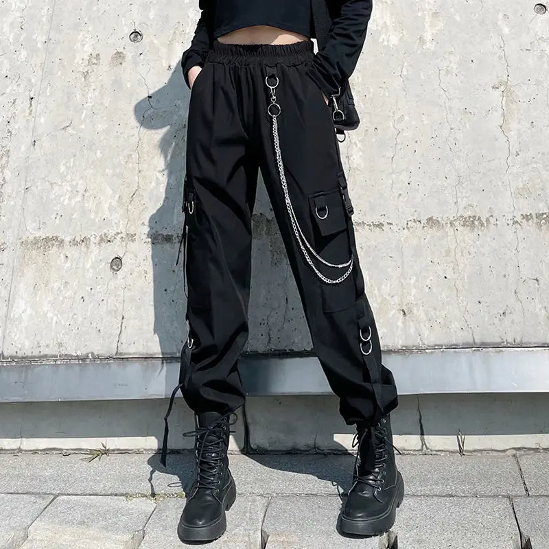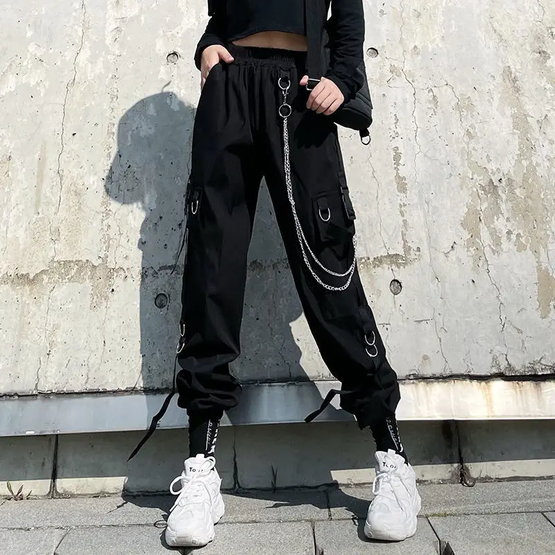 Брюки-карго женские в стиле панк, Джоггеры в стиле хиппи с цепочкой...