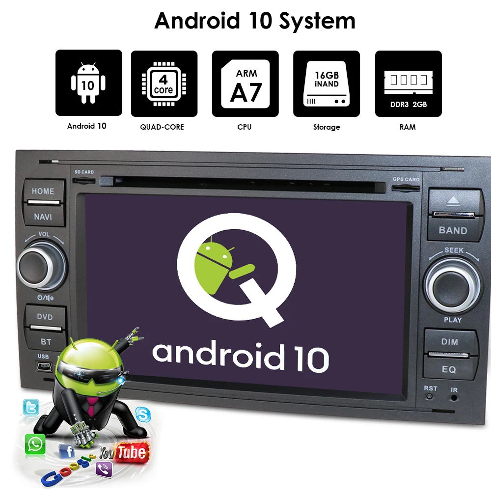 Автомобильный стерео Мультимедийный плеер 2 Din, 7 дюймов, Android 10, dvd, GPS, Авторадио для Transit, Fiesta, Focus, Galaxy, Mondeo, Fusion, C-Max, Wi-Fi