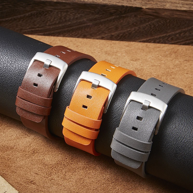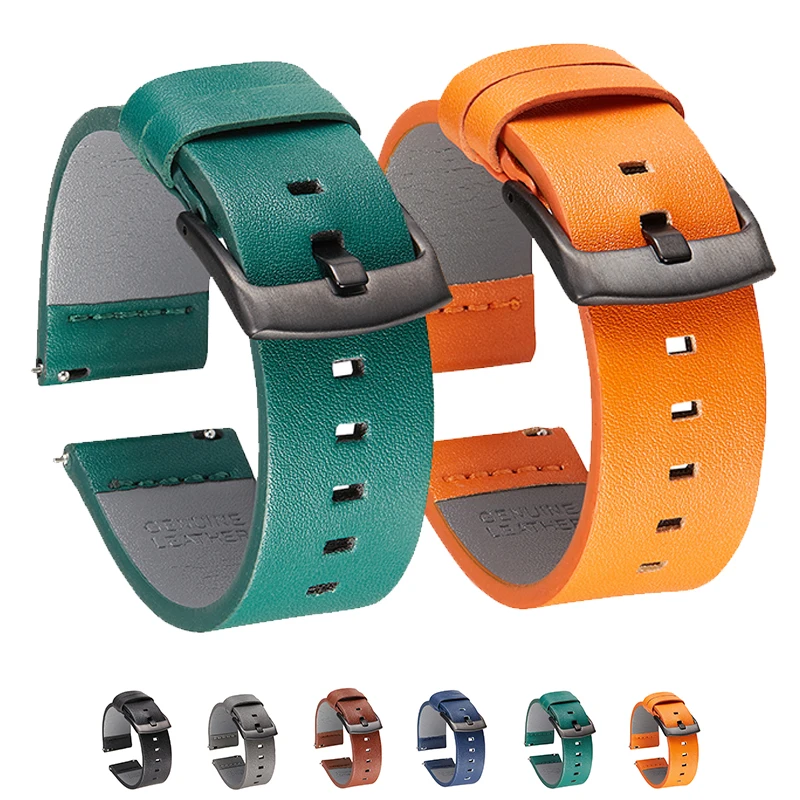 Ремешок кожаный для наручных часов, быстросъемный браслет для часов, 22 мм 20 мм 18 мм 24 мм, Зеленый Оранжевый Черный Коричневый Серый