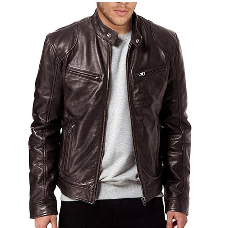 Мужская модная кожаная куртка, приталенная куртка из искусственной кожи с воротником-стойкой, Мужская мотоциклетная куртка с защитой от ветра, с лацканами и Диагональной молнией, Men5XL2021