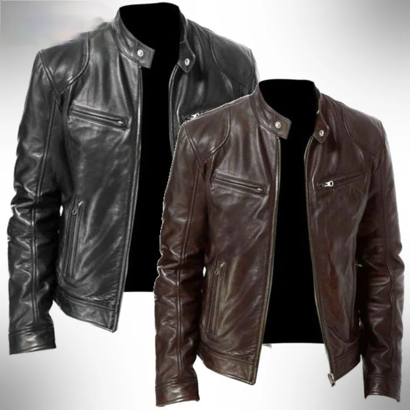 Мужские кожаные куртки, повседневная мотоциклетная кожаная куртка, ...