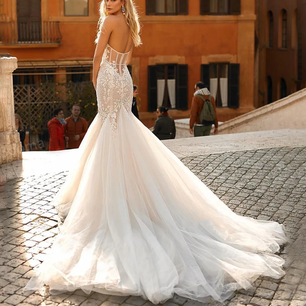 YIWUMENSA Элегантный без бретелек Русалочка Свадебные платья Иллюзия пышные тюлевые Аппликации Труба цвета слоновой кости свадебные платья Suknia Slubna