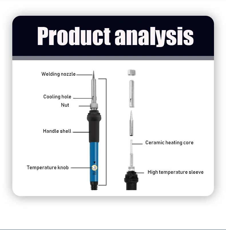 Электрический паяльник 60 Вт, набор регулируемой температуры, керам...