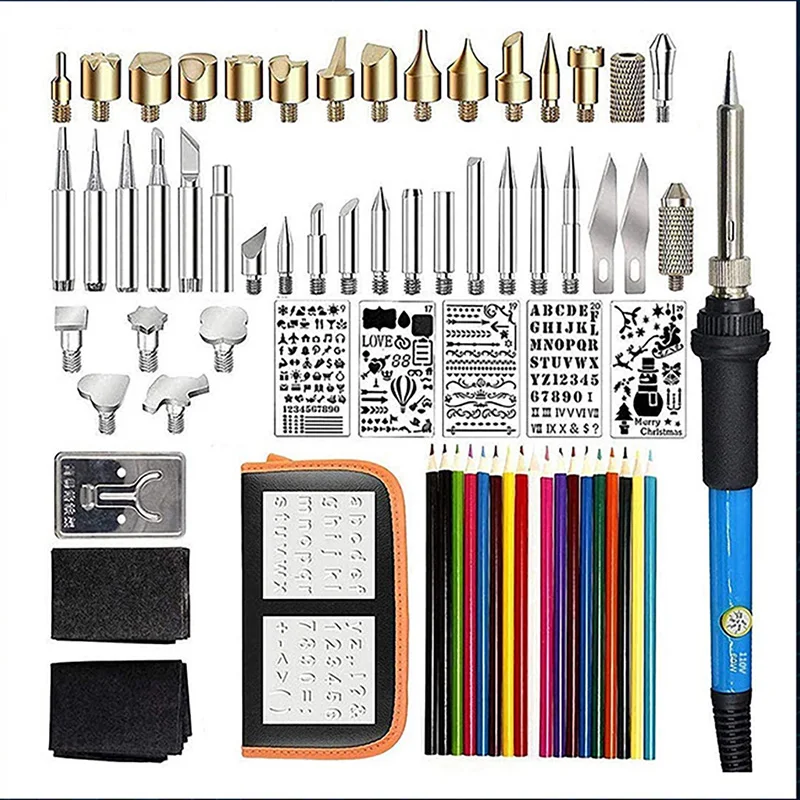 71 предмет лазерной гравировки и набор для пирографии 60 Вт постоянная температура регулируемый Электрический Утюг горячего тиснения 18 виды цветных ручек