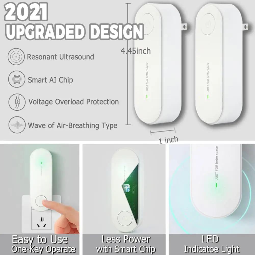 Принцип работы-Ультразвуковой Отпугиватель вредителей с новейшей технологией автоматического преобразования частоты, производит различные ультразвуковые полосы и непрерывно изменяет различные частоты, может стимулировать и мешать слуховой и нервной системе мыши. Вредители, такие как мыши, мухи, клещи, клопы и т. Д., чувствуют себя некомфортно и некомфортно, и заставляют их покидать свои помещения.3 в 1 отталкивающий эффект-репеллент с тройным ультразвуковым частотным диапазоном-ультразвук, волнистая Пилообразная и бионическая волна, увеличивает его силу, чтобы изгнать всех домашних вредителей 800-1800 ft². И волна на 360 градусов вокруг покрытия, пусть мышам и другим вредителям негде спрятаться.Простота установки и работы-поместите наш ультразвуковой репеллент 31,5-47,5 дюймов от земли, просто подключите наш электронный контроль вредителей, и он сделает все остальное при освещении 3 цветных ламп. Обычно вы можете увидеть эффект в течение 3-4 недель, в зависимости от степени заражения. Убедитесь, что Отпугиватель не мешает мебели или электроприборов при использовании.Абсолютная безопасность для людей и домашних животных-ультразвуковой отталкивающий вредителей безопасен, не токсичен и не содержит излучения для человеческого организма. Вам не придется беспокоиться о том, что вашим детям, малышам, собакам, кошкам, рыбам, кроликам будет причинен вред. С передовым ультразвуковым контролем вы можете устранить вредителей с гуманным обращением, но безвредным для детей или животных. И вам не придется убивать комаров химическими веществами и очищать их остатки после этого.