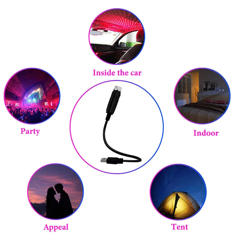 Звездные светильники на крышу автомобиля очень просты в установке, с USB-разъемом с напряжением 5 В Подключите USB-разъем к автомобильному USB-разъему