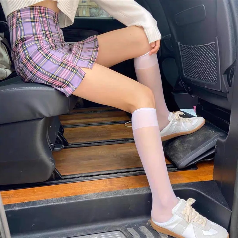 Летние ультратонкие носки, шелковые гольфы, гольфы Jk Lolita, белые...