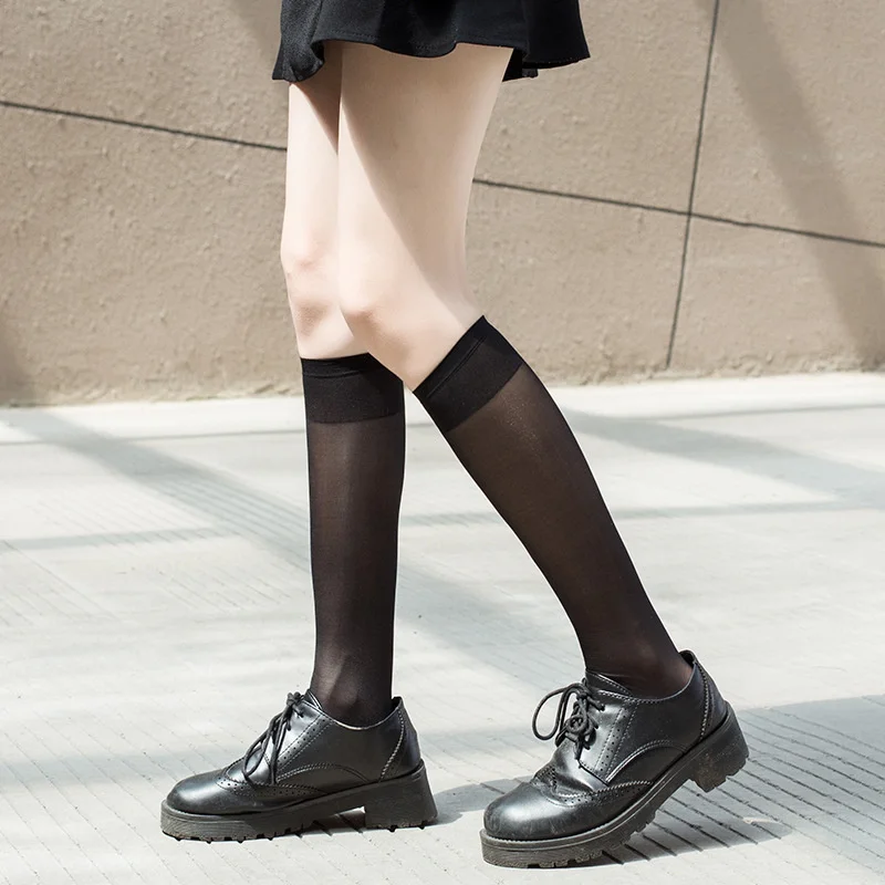 Носки до колена, шелковые, ультратонкие, белые, черные, до середины...