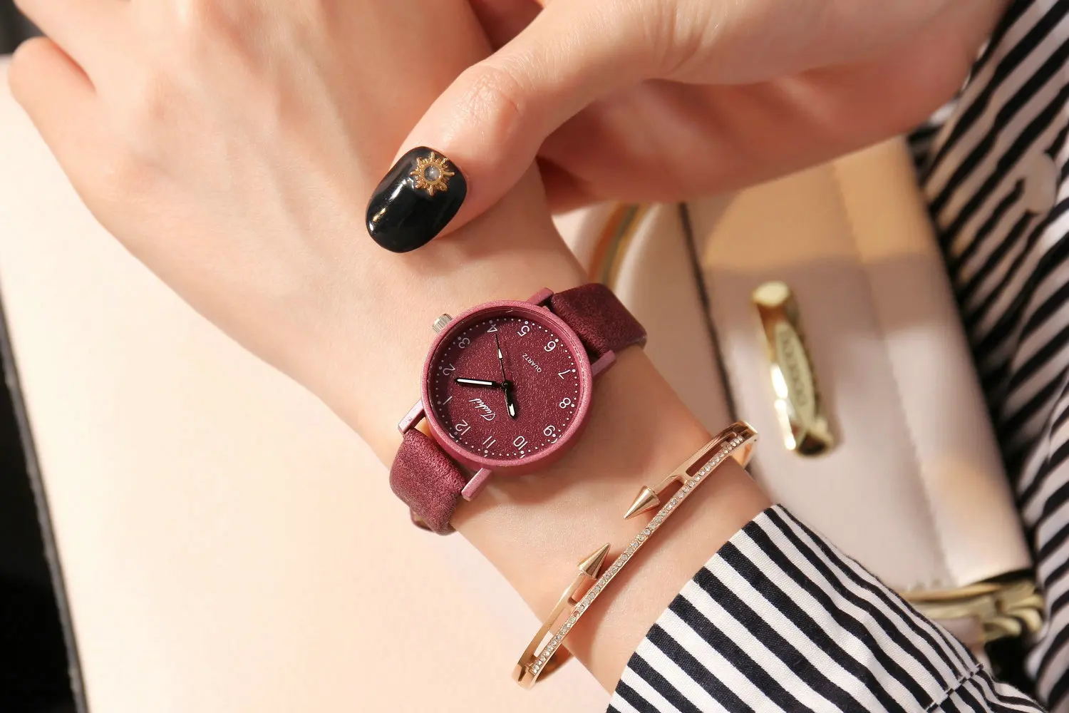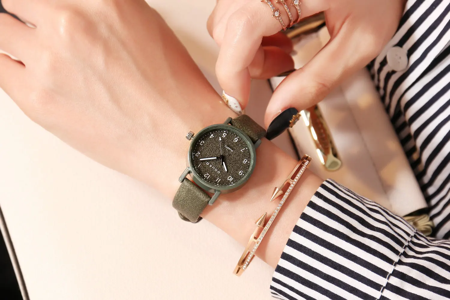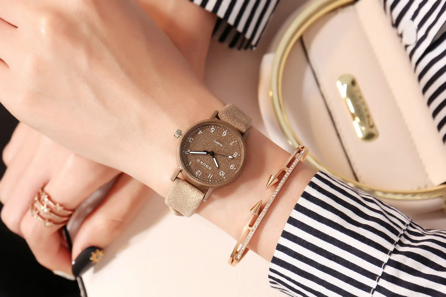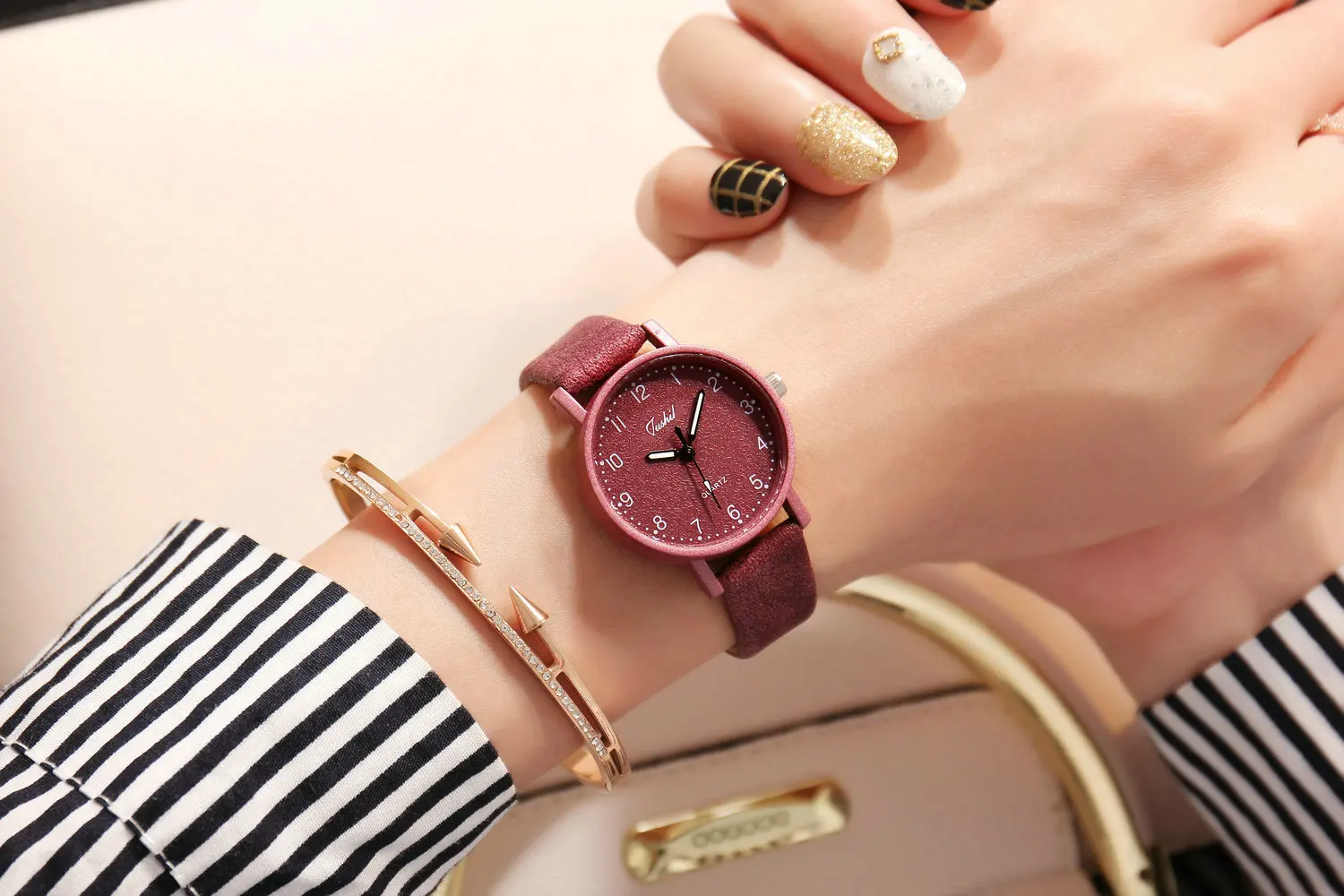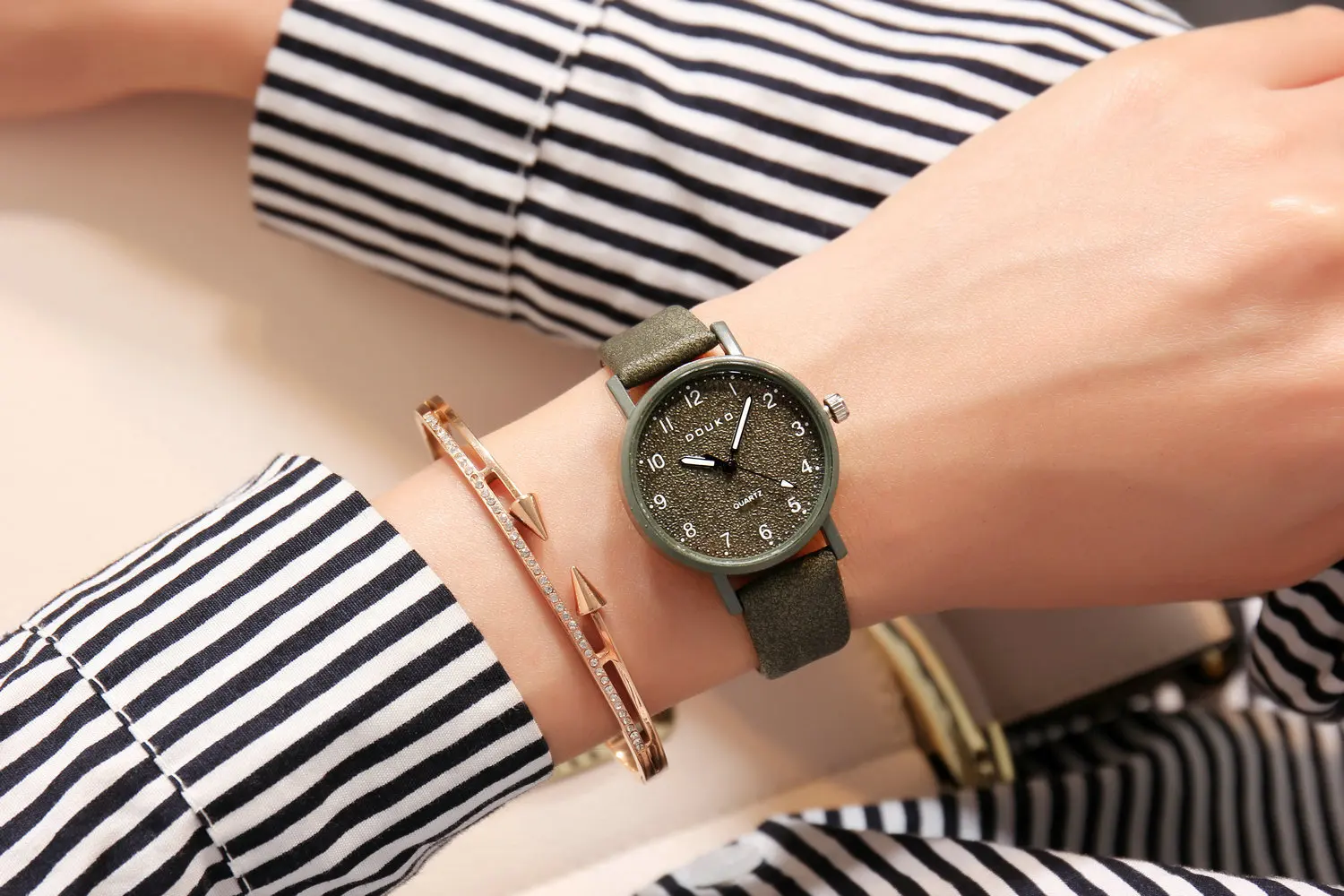 Простой маленький циферблат художественный камень зернистый Ремешок Модные женские часы для влюбленных часы